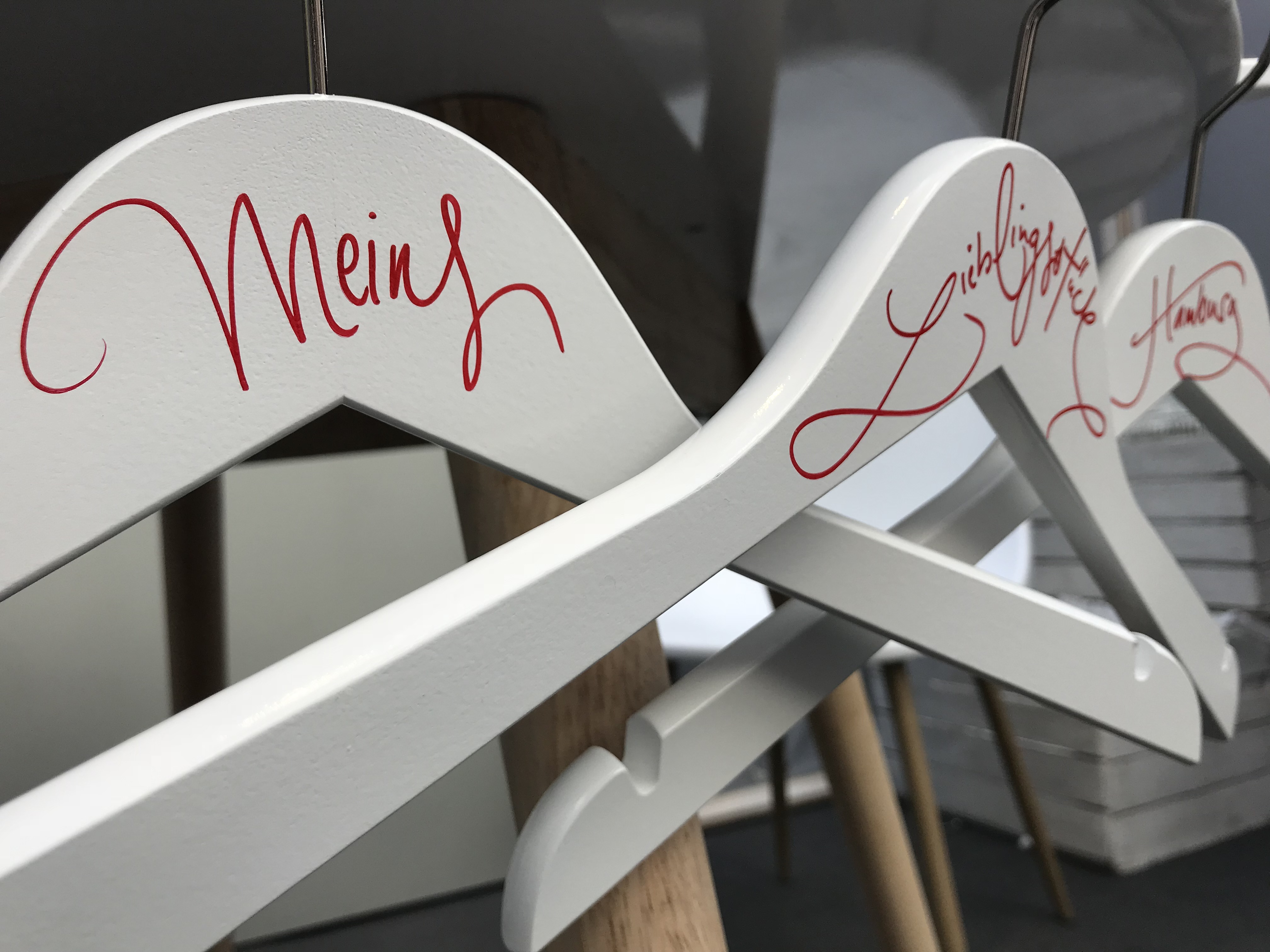 Kalligraphierte Kleiderbügel für C & A während eines Brigitte Style Events bei Gruner + Jahr.