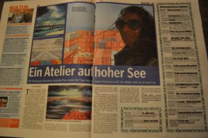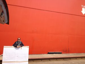 Mit dem Hamburg Süd Containerschiff Santa Rosa von Hamburg nach Tilbury: An Bord mache ich meine Eignerkabine zum Atelier und male mitten auf dem Meer. Hier auf dem 380 Meter langen Schiff habe ich vollkommene Ruhe. Mit meiner Handykamera filme ich die Stimmung, die man nicht mit Worten erklären kann…