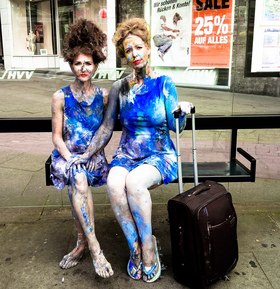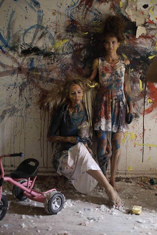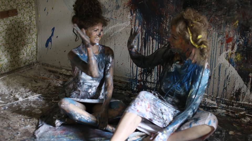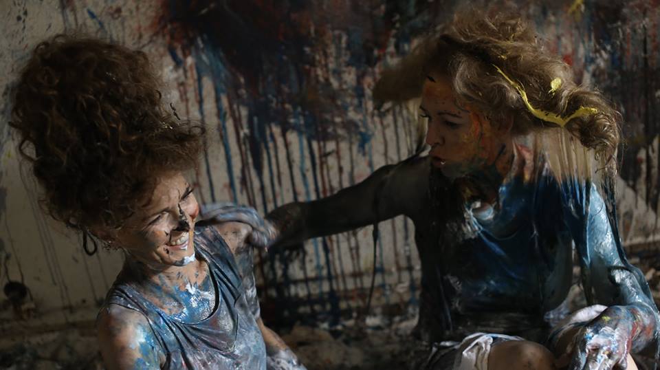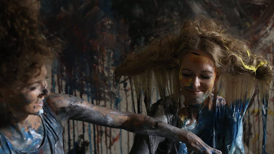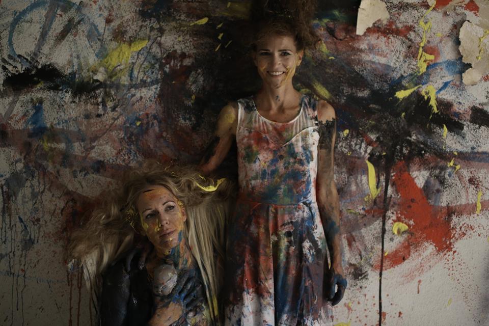 Für das Musikvideo WIR WAREN JUNG von Heinrich von Handzahm dürfen Constanze Köpp und ich uns benehmen, wie ausgelassene Kinder. Alles ist erlaubt. Wir malen uns gegenseitig an, werfen mit Farbe und wälzen uns im herrlich bunten Farbmatsch.