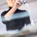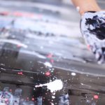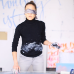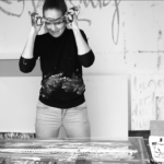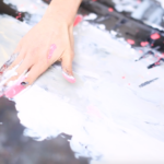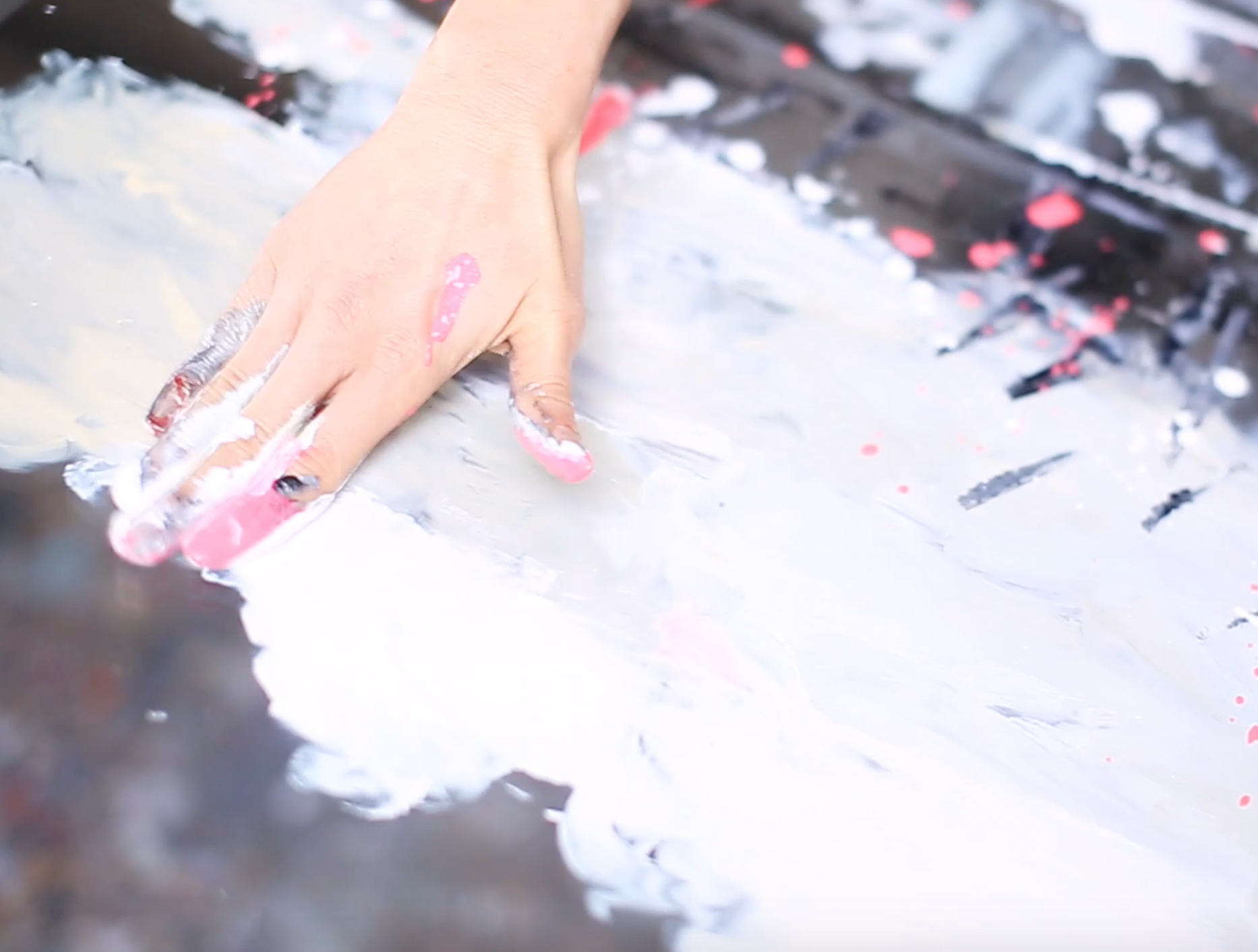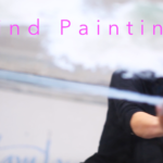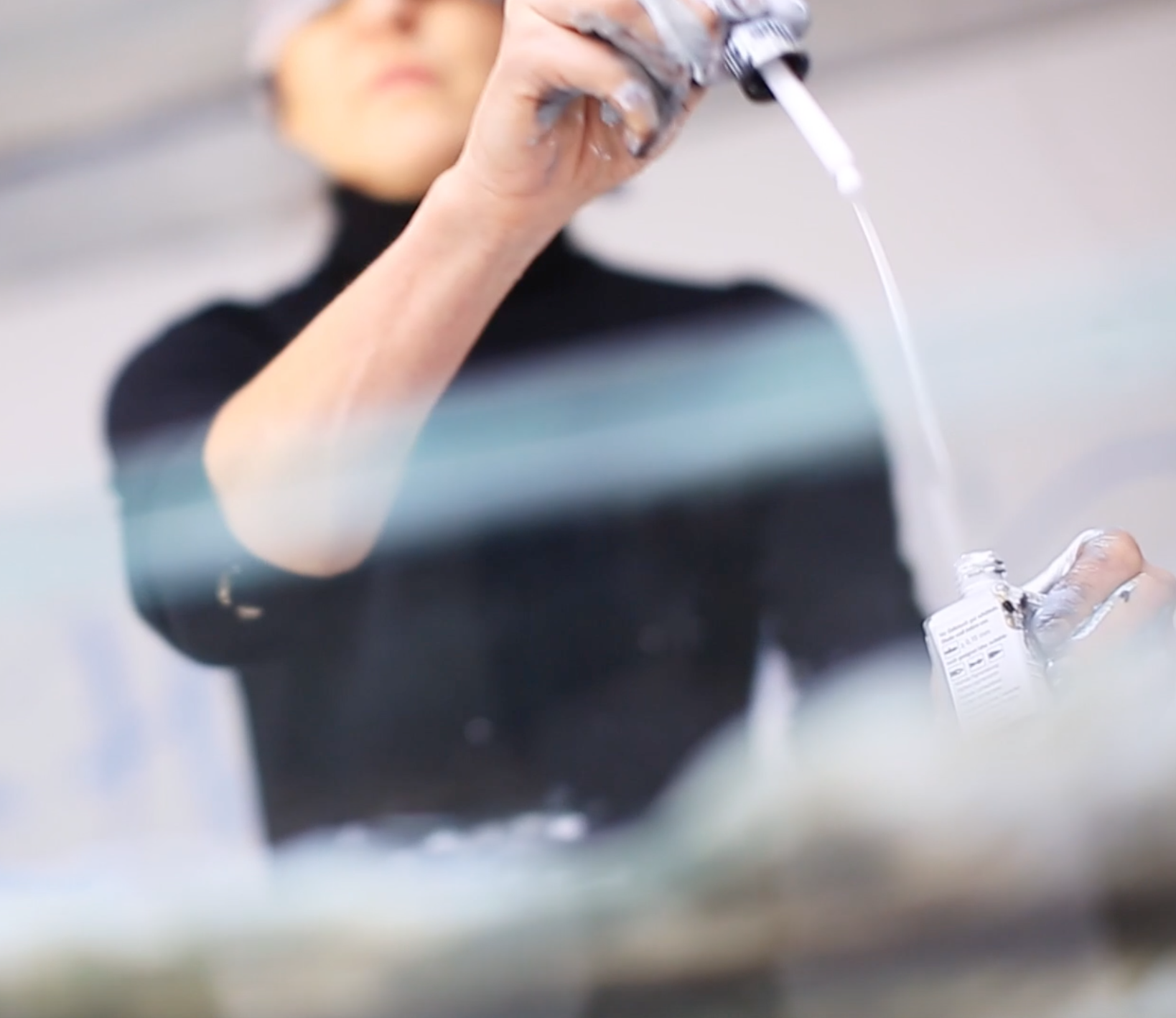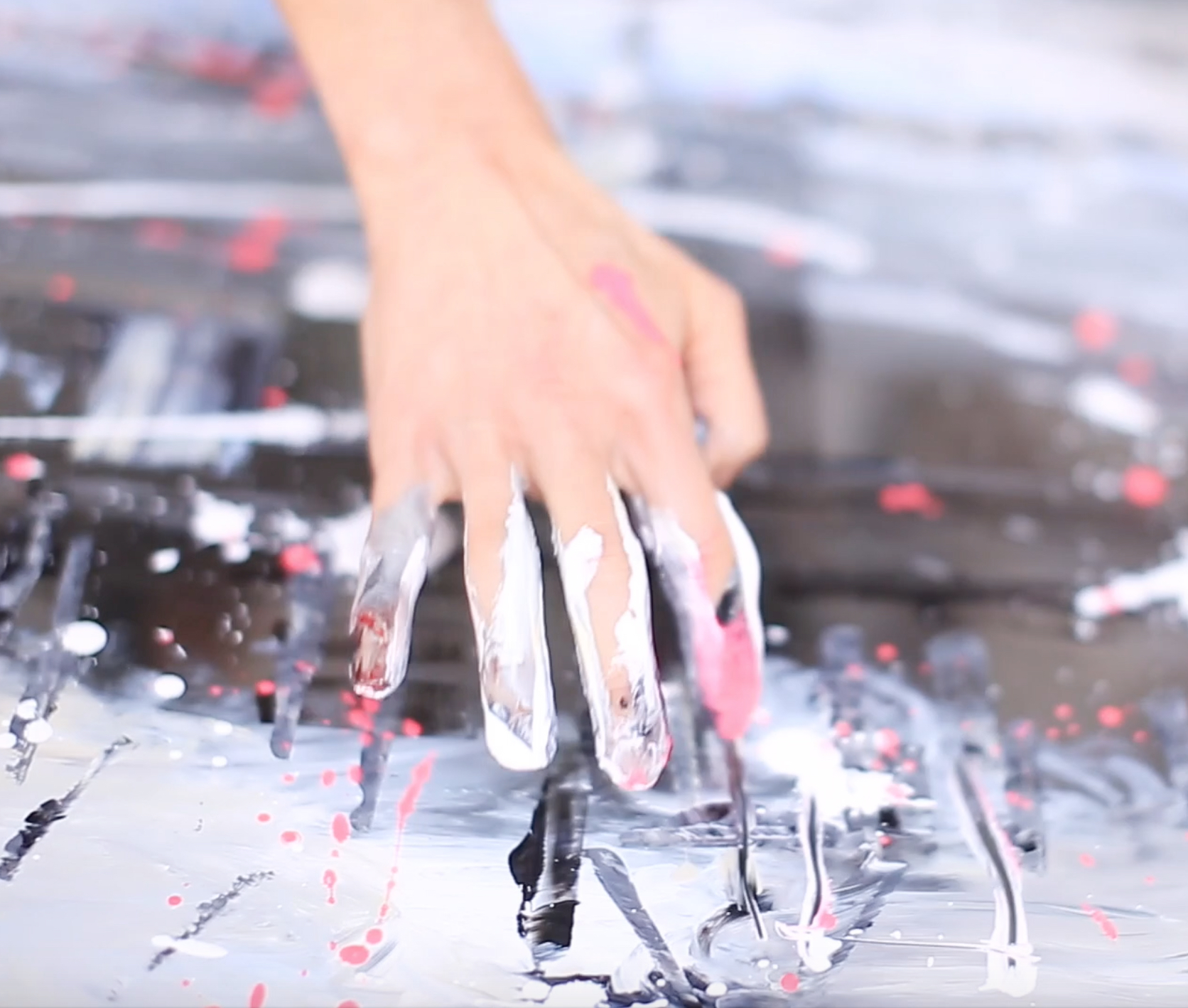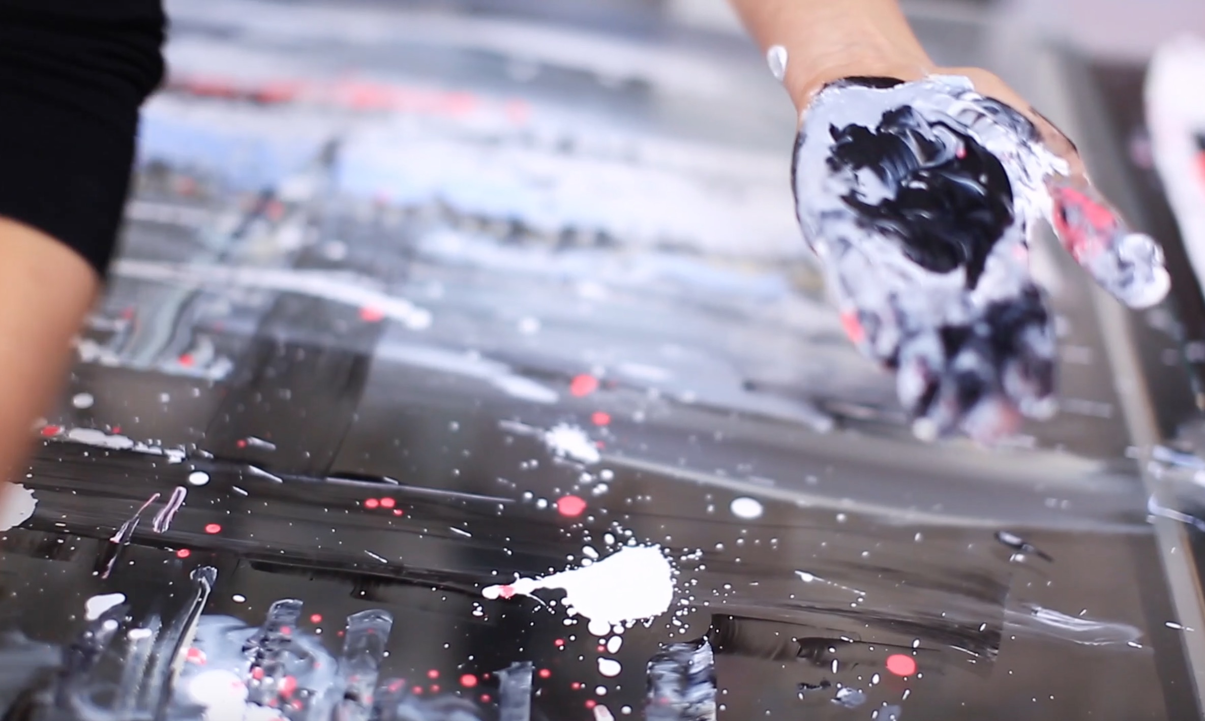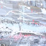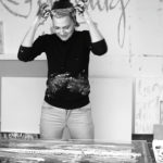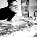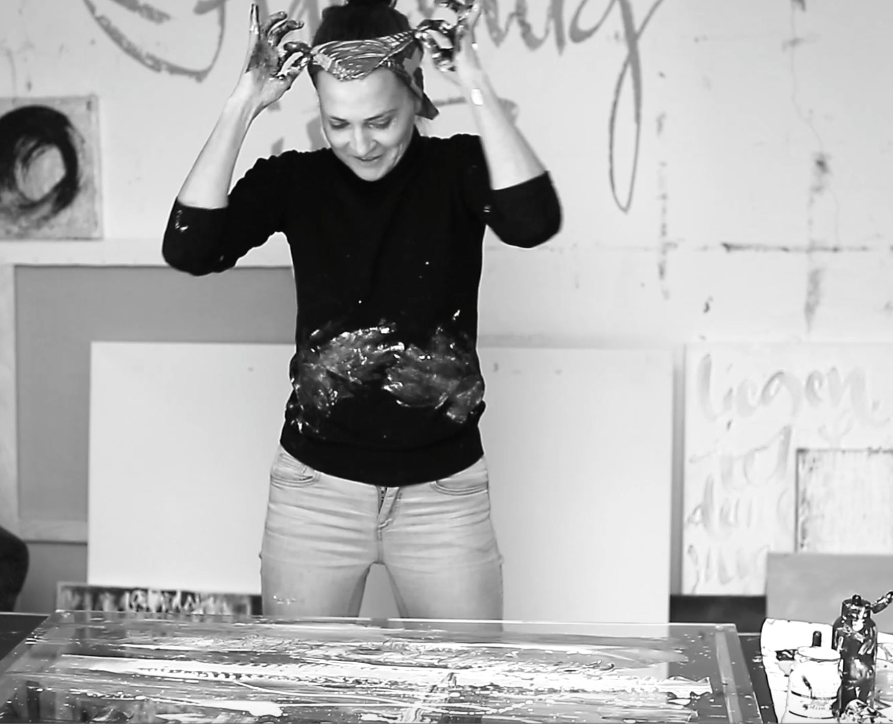 Ich war gespannt, ob ich den Hamburger Hafen inzwischen blind malen kann.. Gestern probierte ich es aus. Ohne zu sehen, malte ich das Bild fühlend und ohne Handschuhe, um intensiver die Farbe zu spüren. Ein Experiment auf Glas. ( Foto: Ronny Zeisberg )