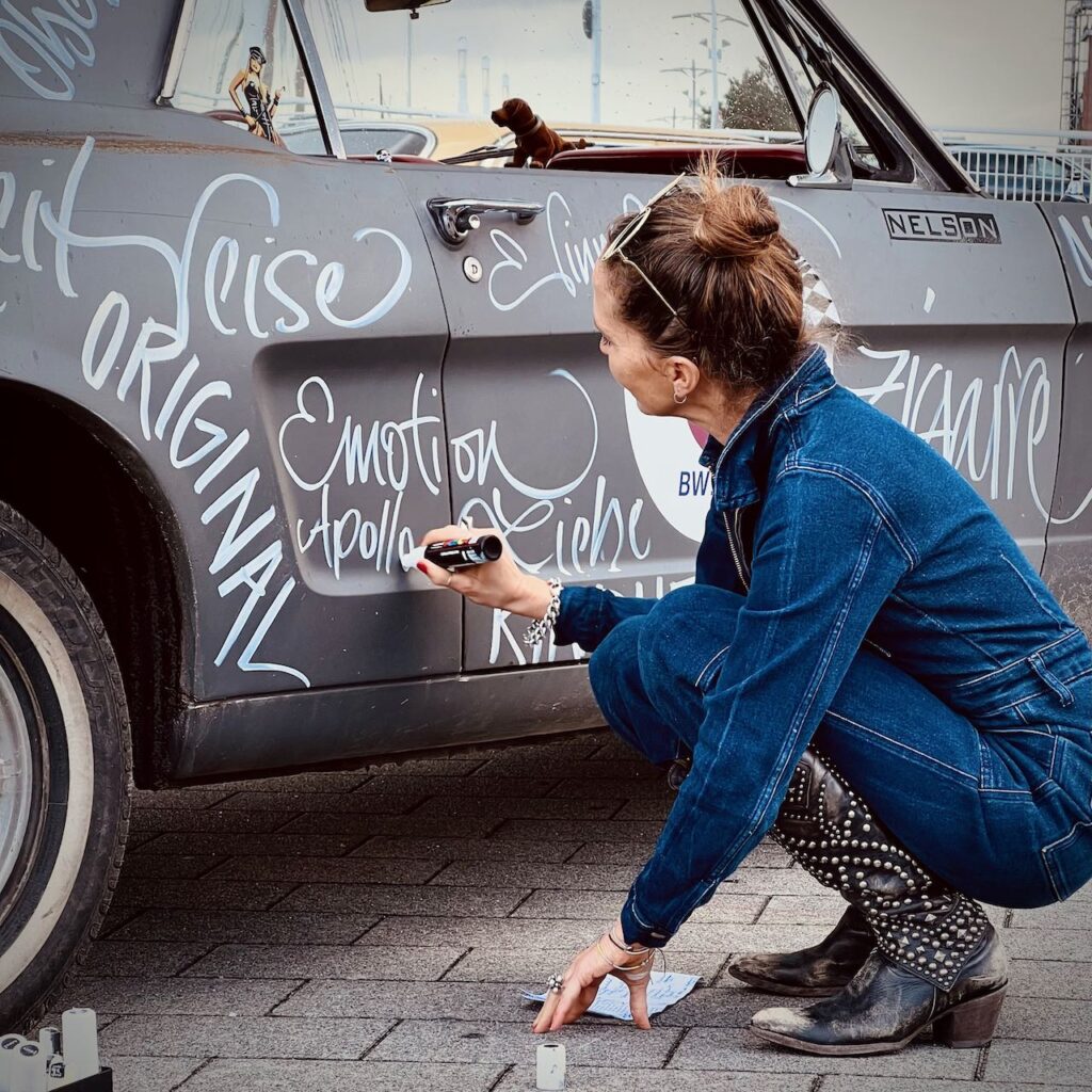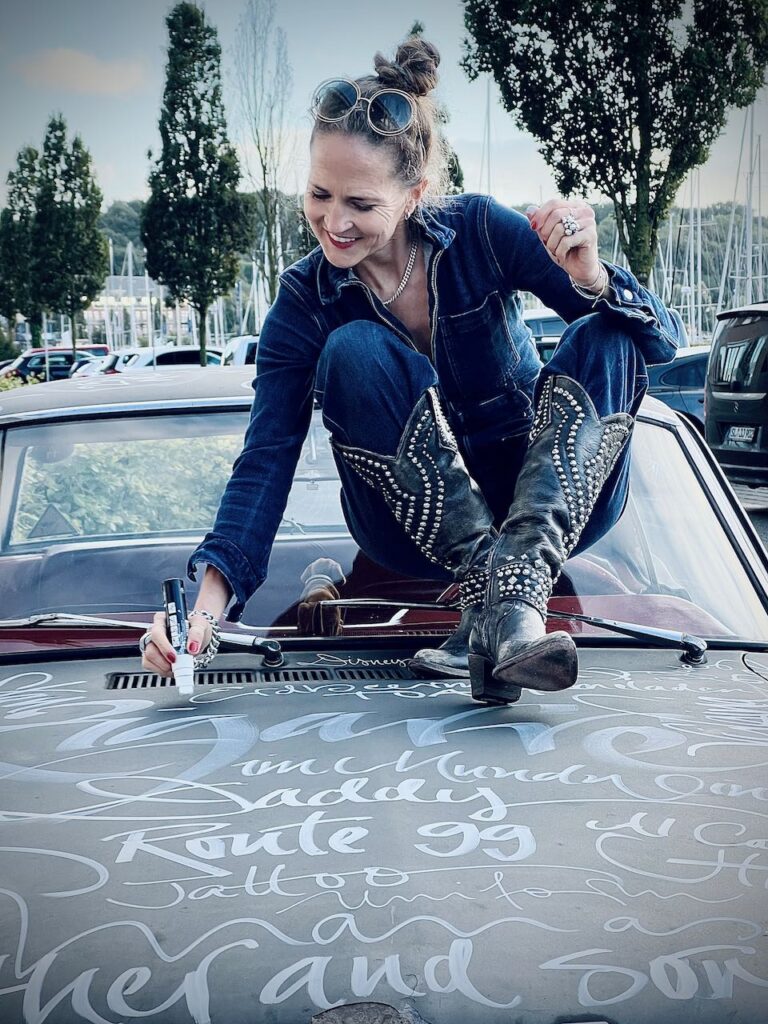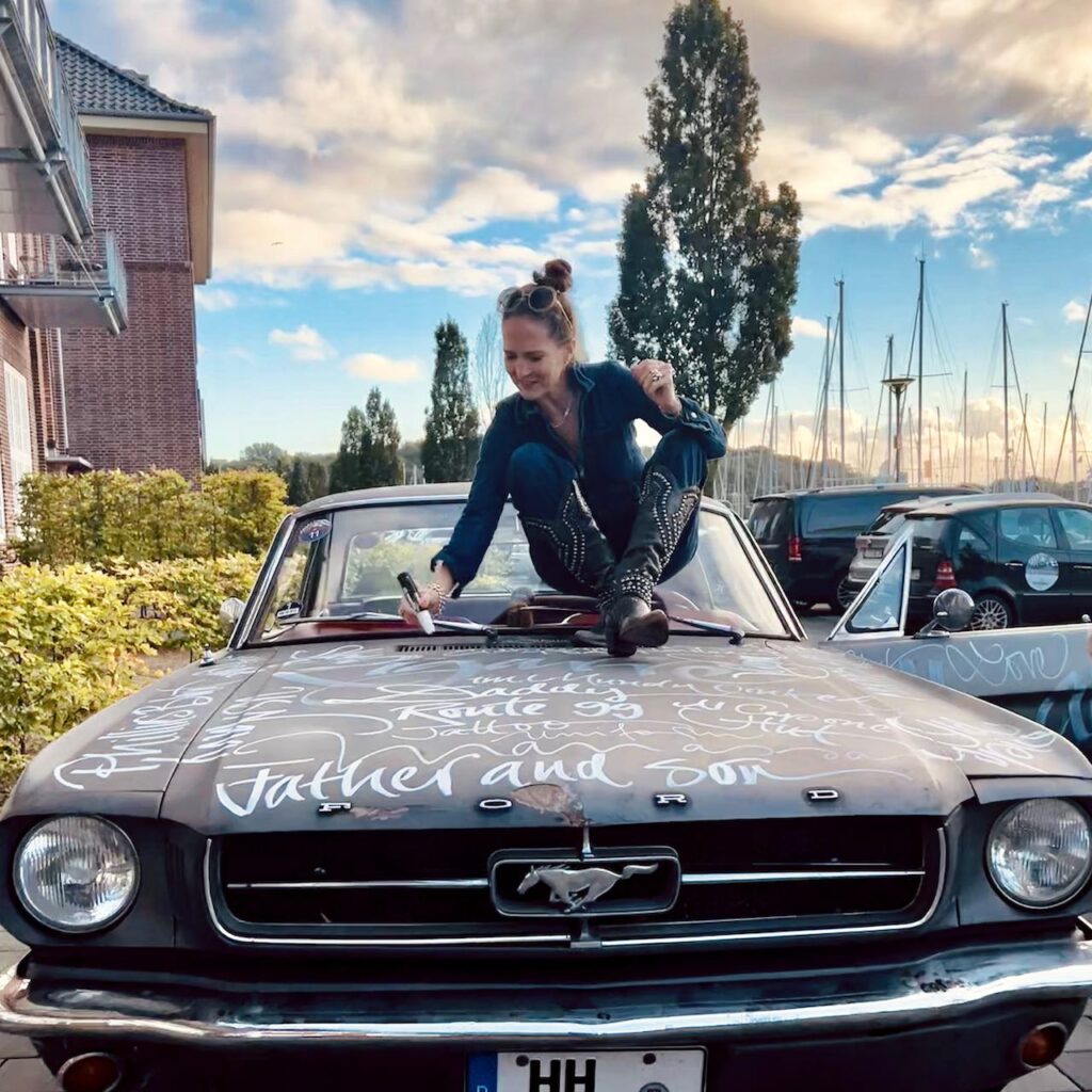 Es ist eine berührenden Vater-Sohn Geschichte, die ich auf einen Mustang schreiben durfte. Während ich Wort für Wort der persönlichen Erinnerungen auf der Motorhaube verewigte, verwandelte sich die Collage zu einer bewegenden Biografie. Ich freue mich, dass ich dazu beitragen durfte, die Vergangenheit in diesem besonderen Stil zu würdigen. Der Ford Mustang war Teilnehmer der 9. Hamburg Car Classics 2022 und wurde als Krönung vor dem Hotel @dasjamesflensburg ausgestellt.