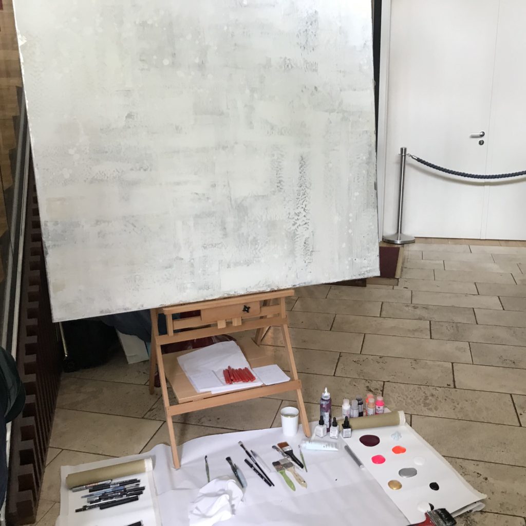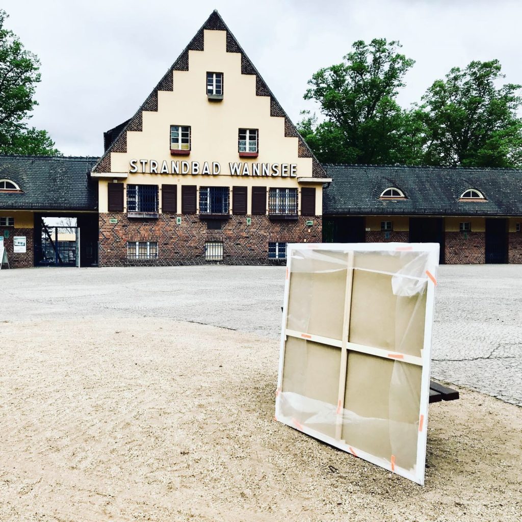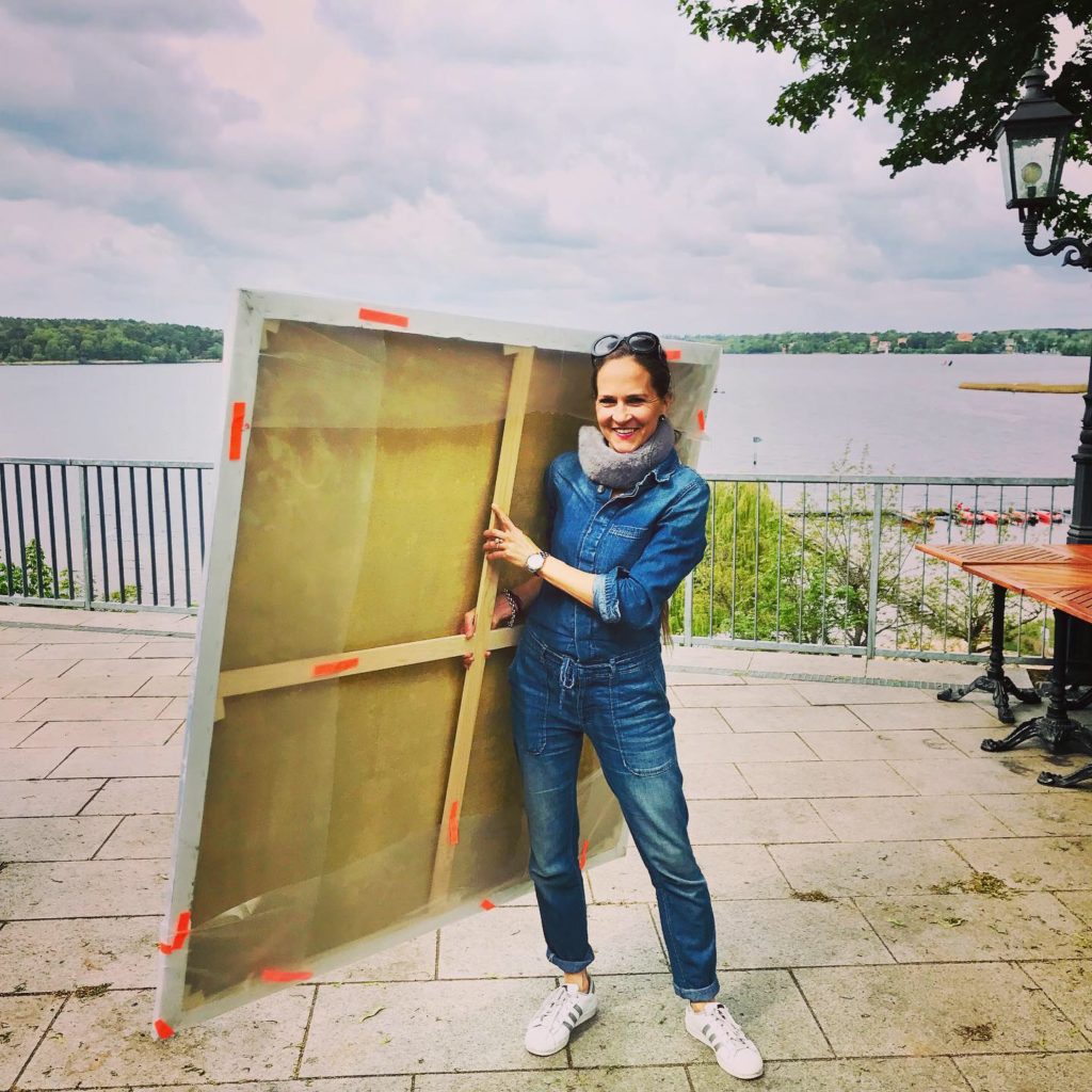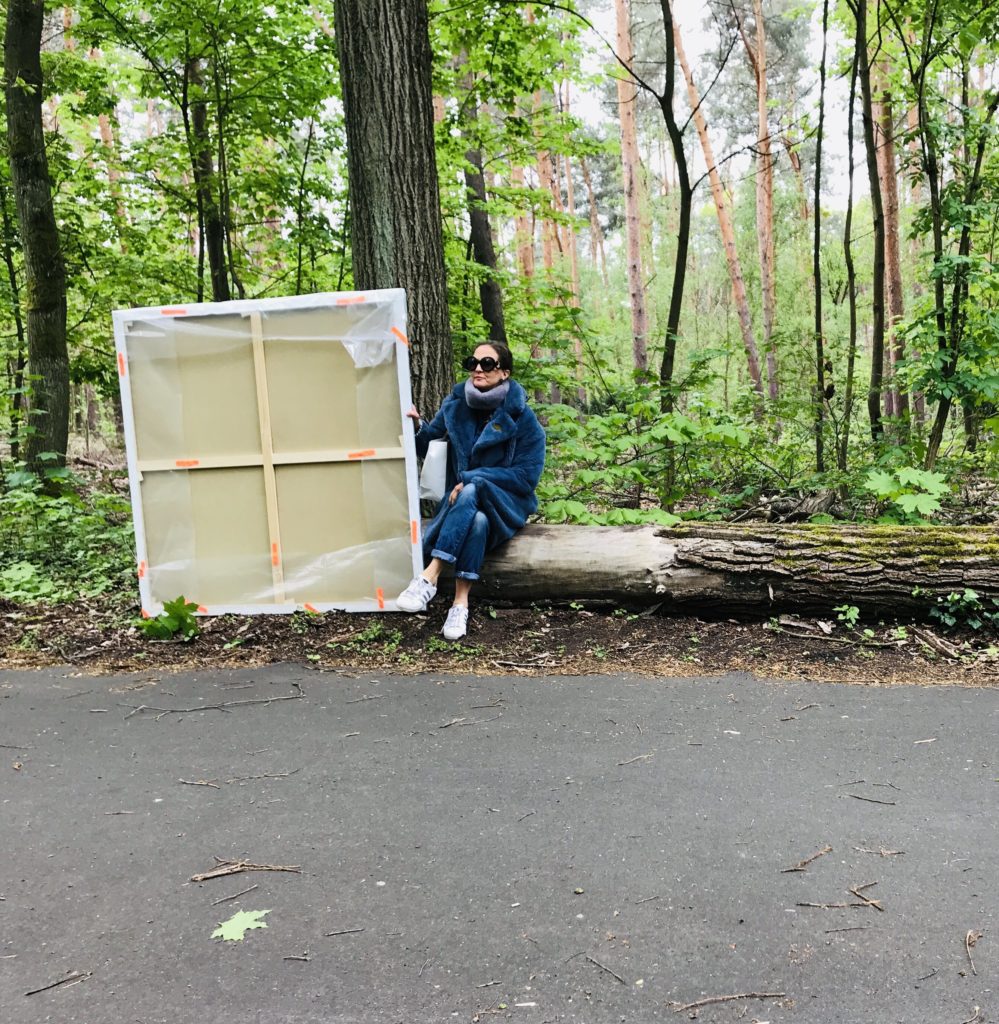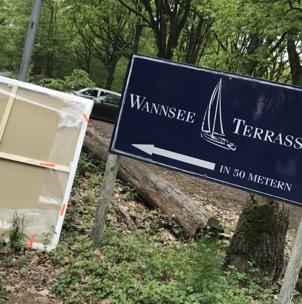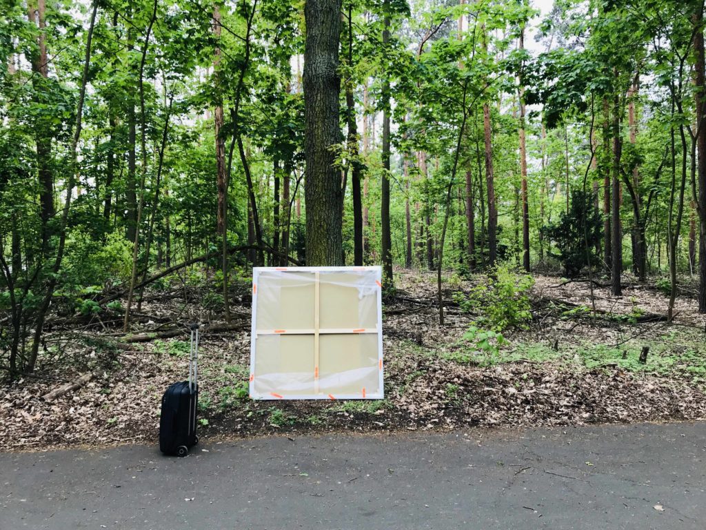 Mein Weg mit meiner Leinwand auf dem Kopf von Hamburg nach Berlin war für mich ein schönes Abenteuer. Das letzte Stück durch den Wald und das Ziel am See war die Krönung meiner Anreise.