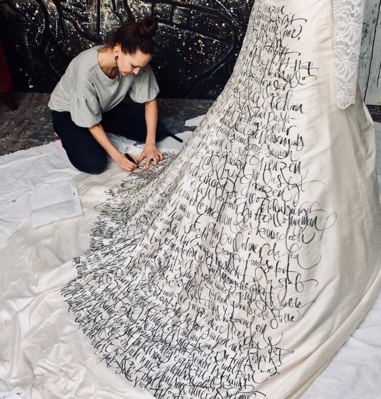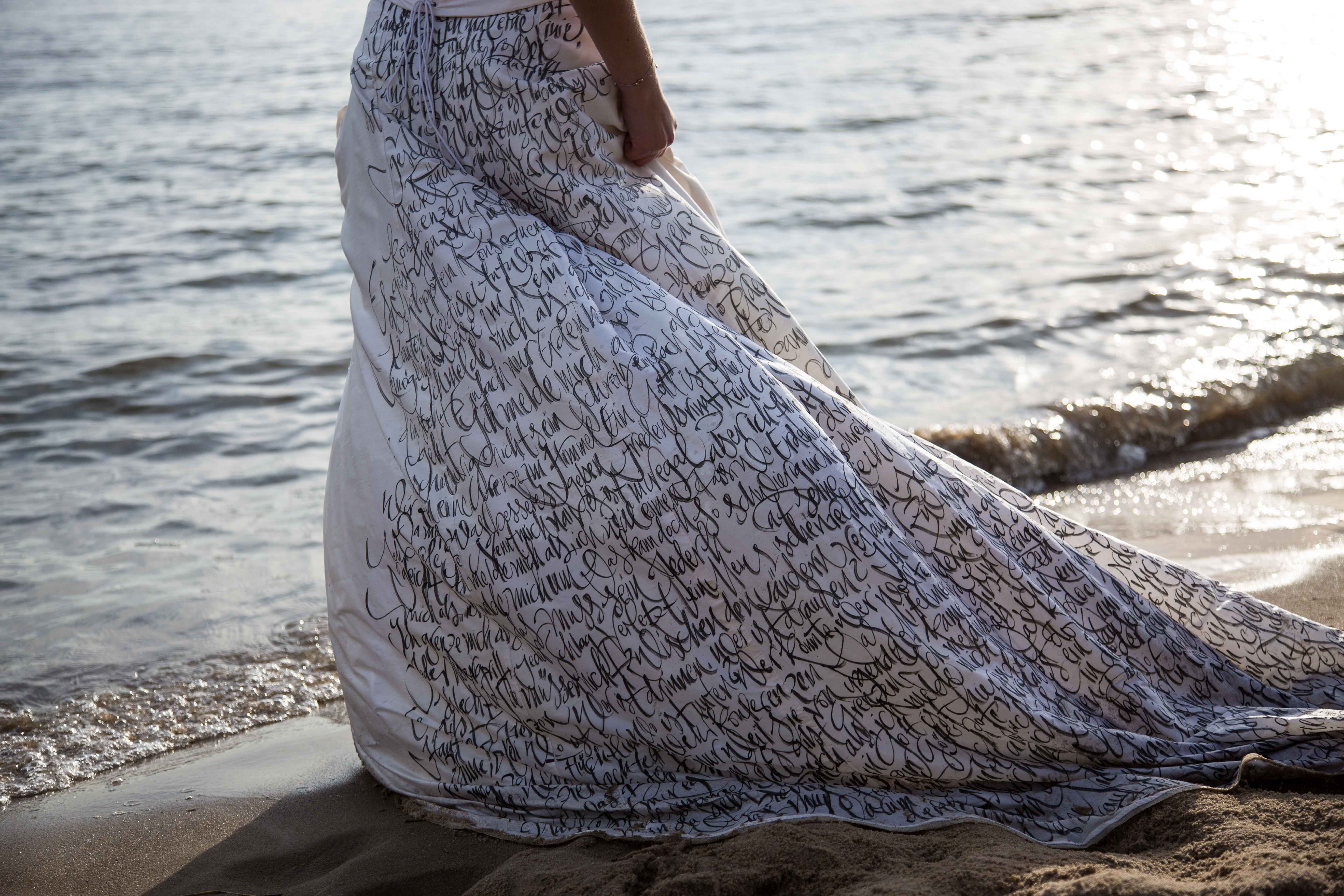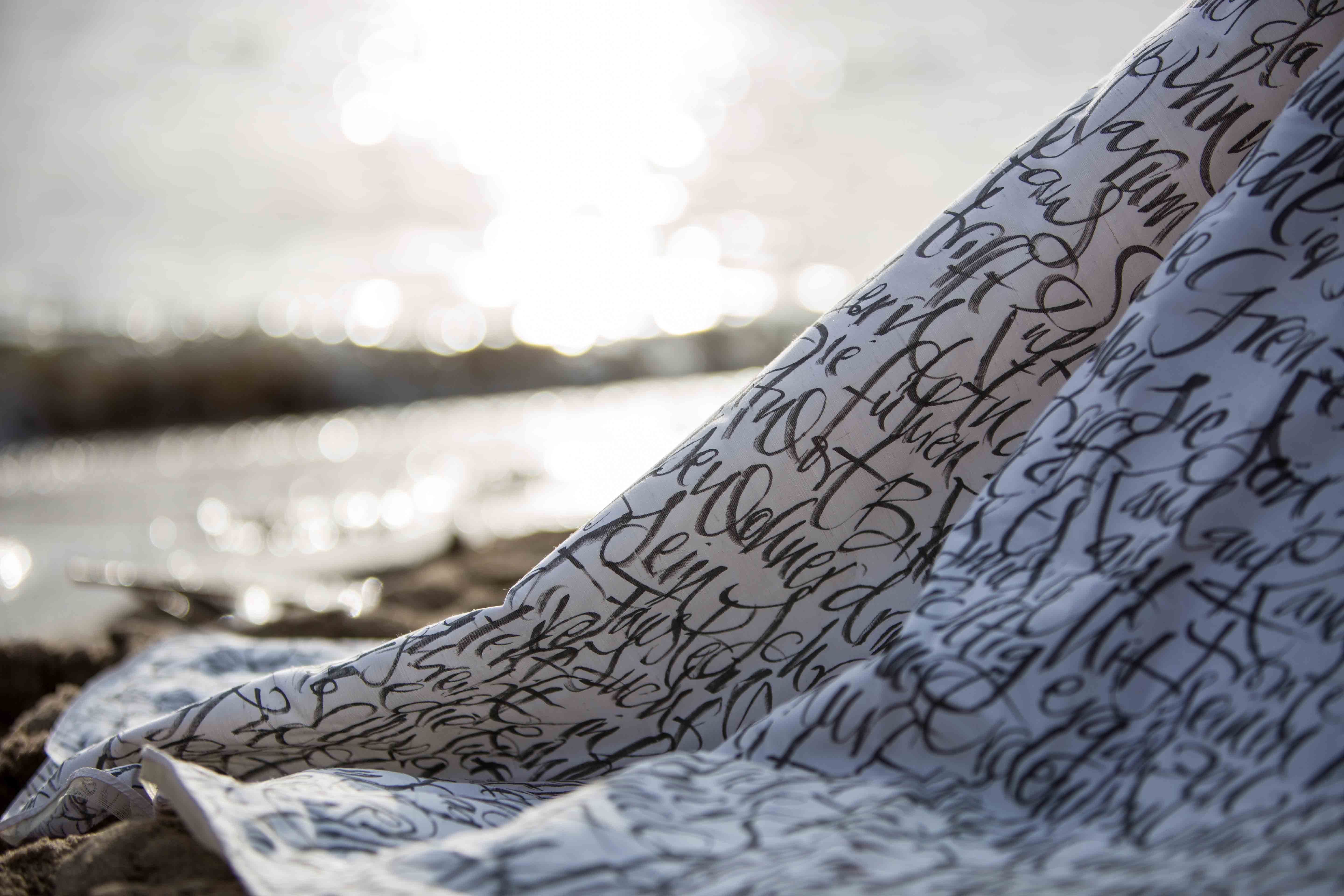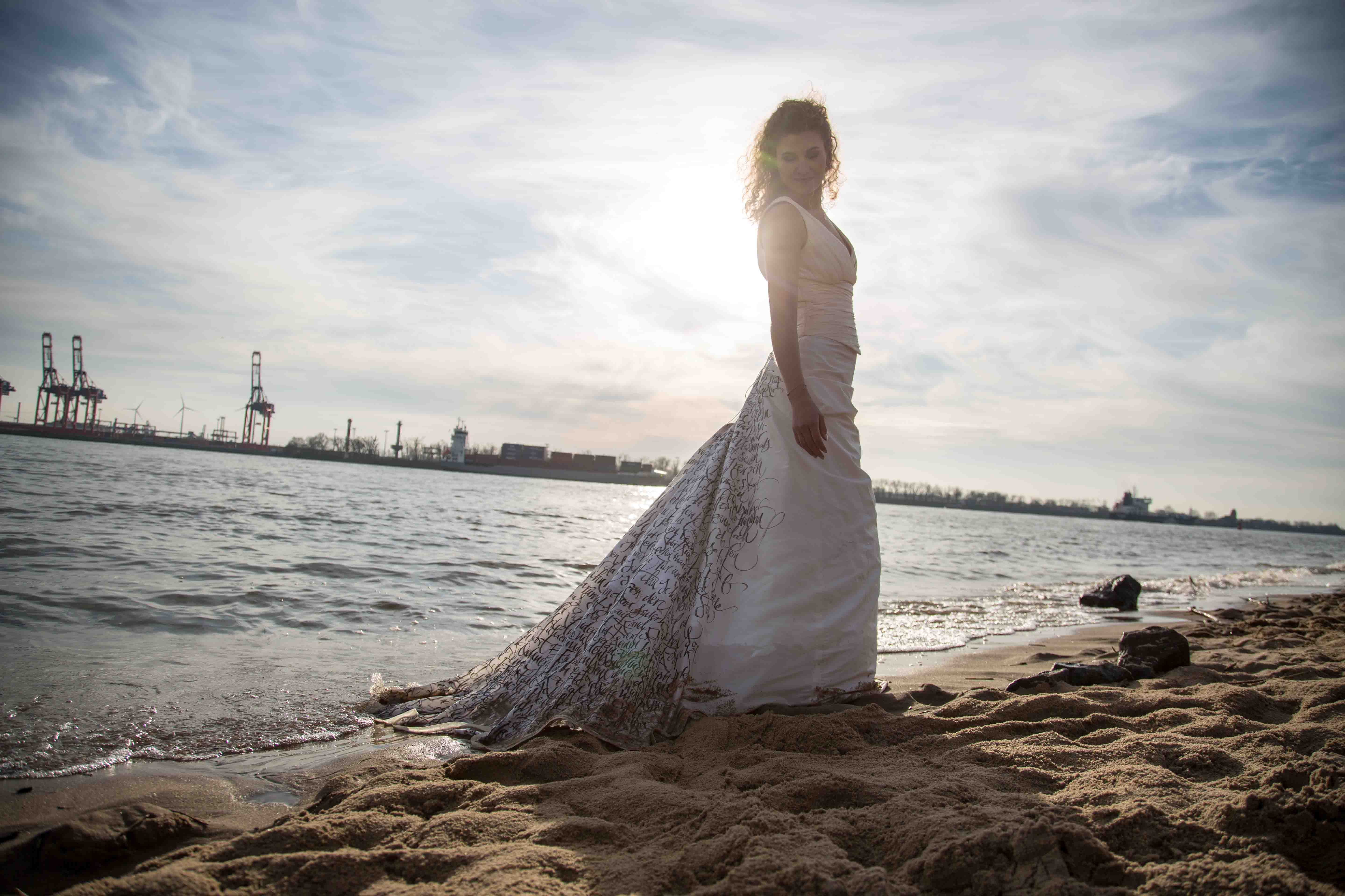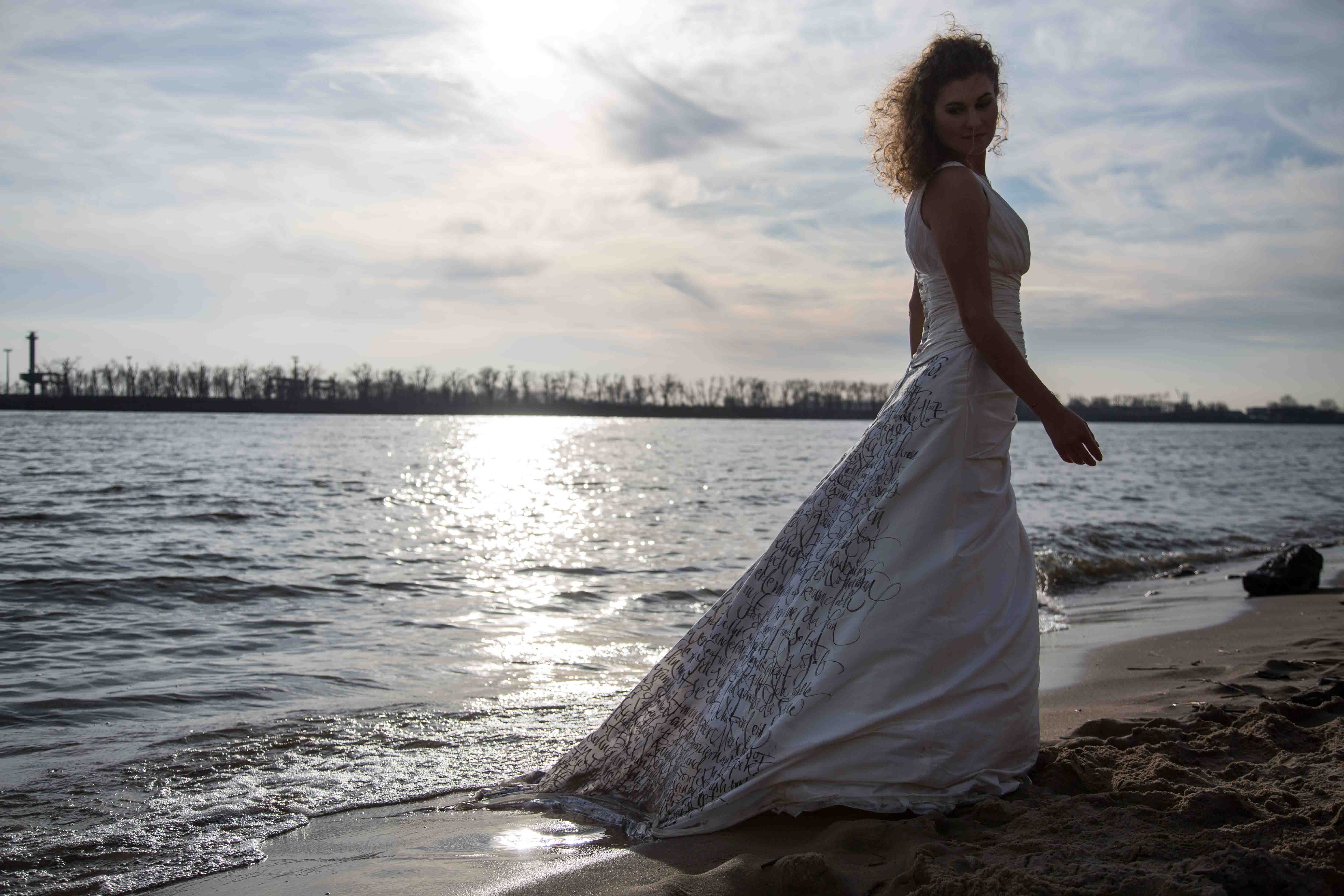 Ich wollte unbedingt ein Brautkleid kalligraphieren. Kaum ausgesprochen, stand Fotografin Julia Löwe zum shooting bereit. Mit ihr ein Kleid von Mona Berg und das Lied „Grenzen“ von Dota Kehr. Die Sonne tat ihr Bestes für ein Experiment am Elbstrand…