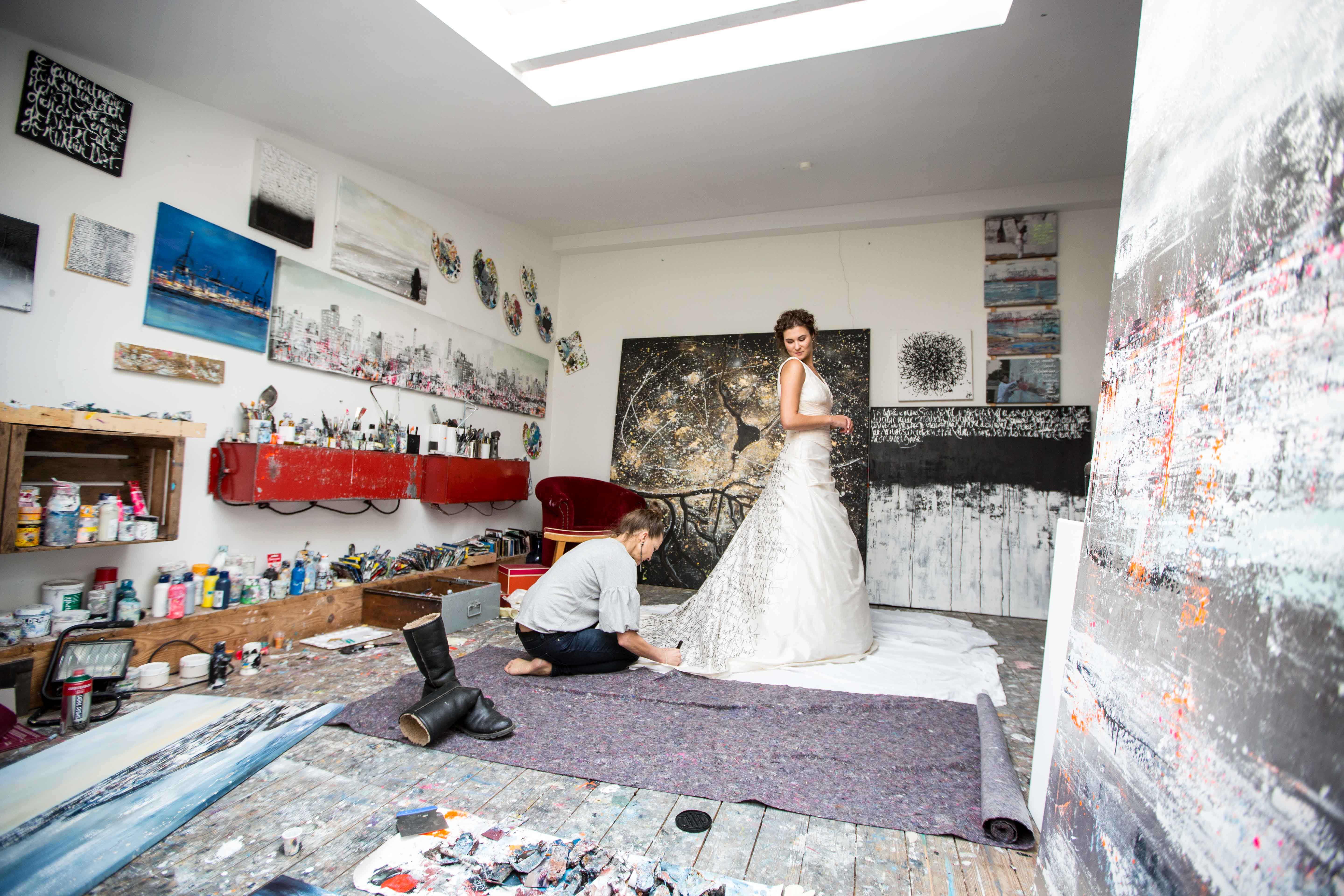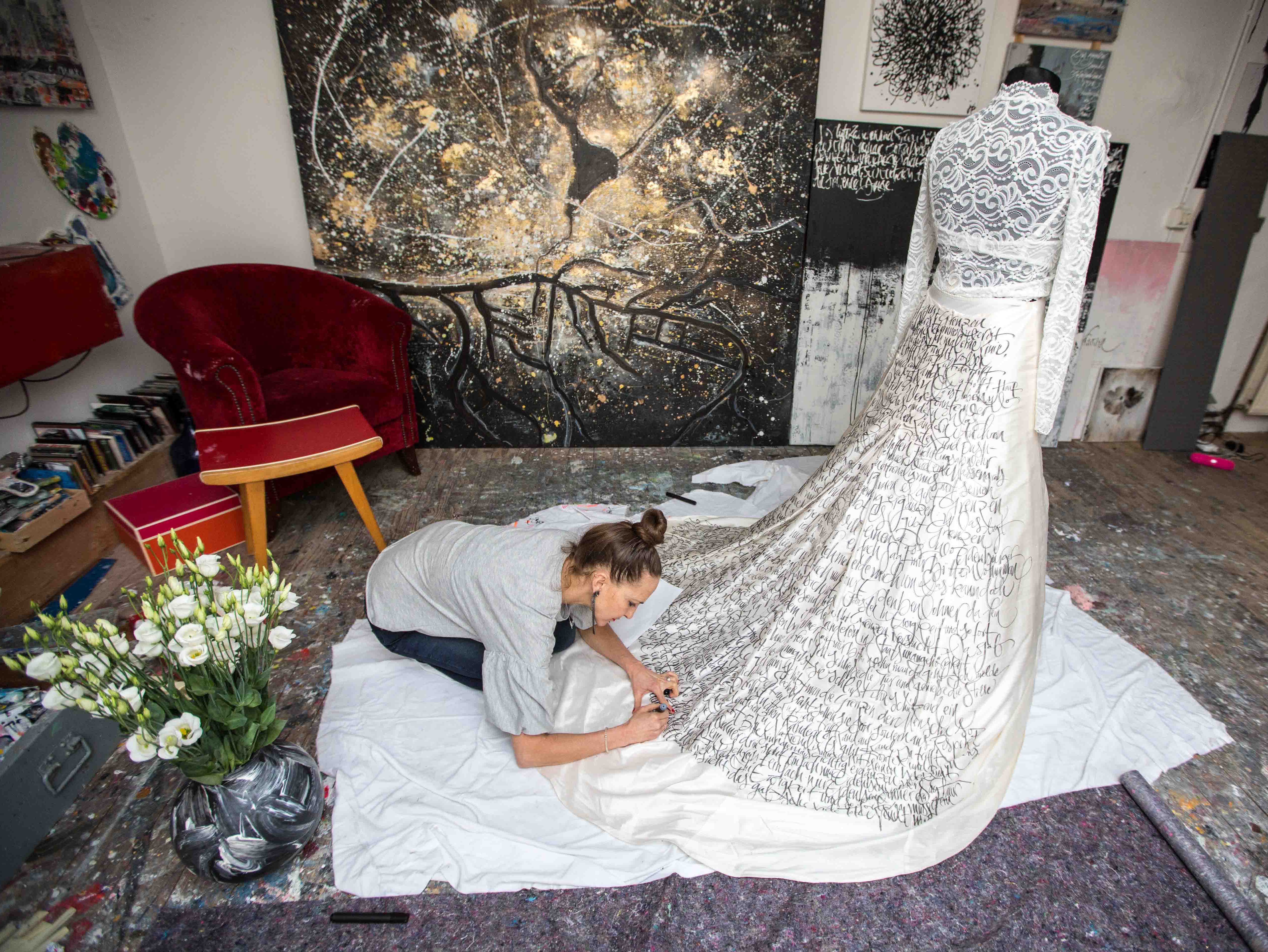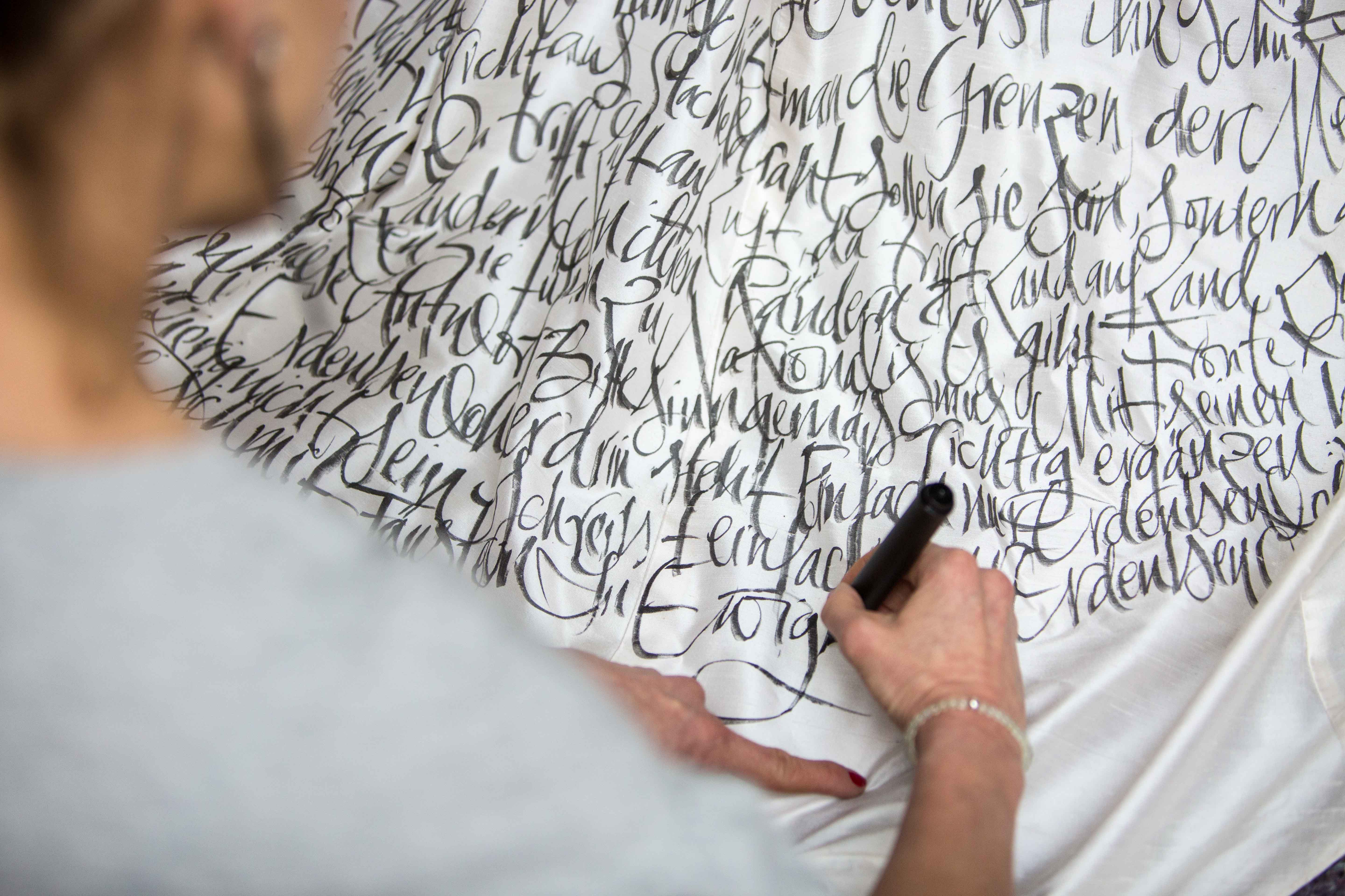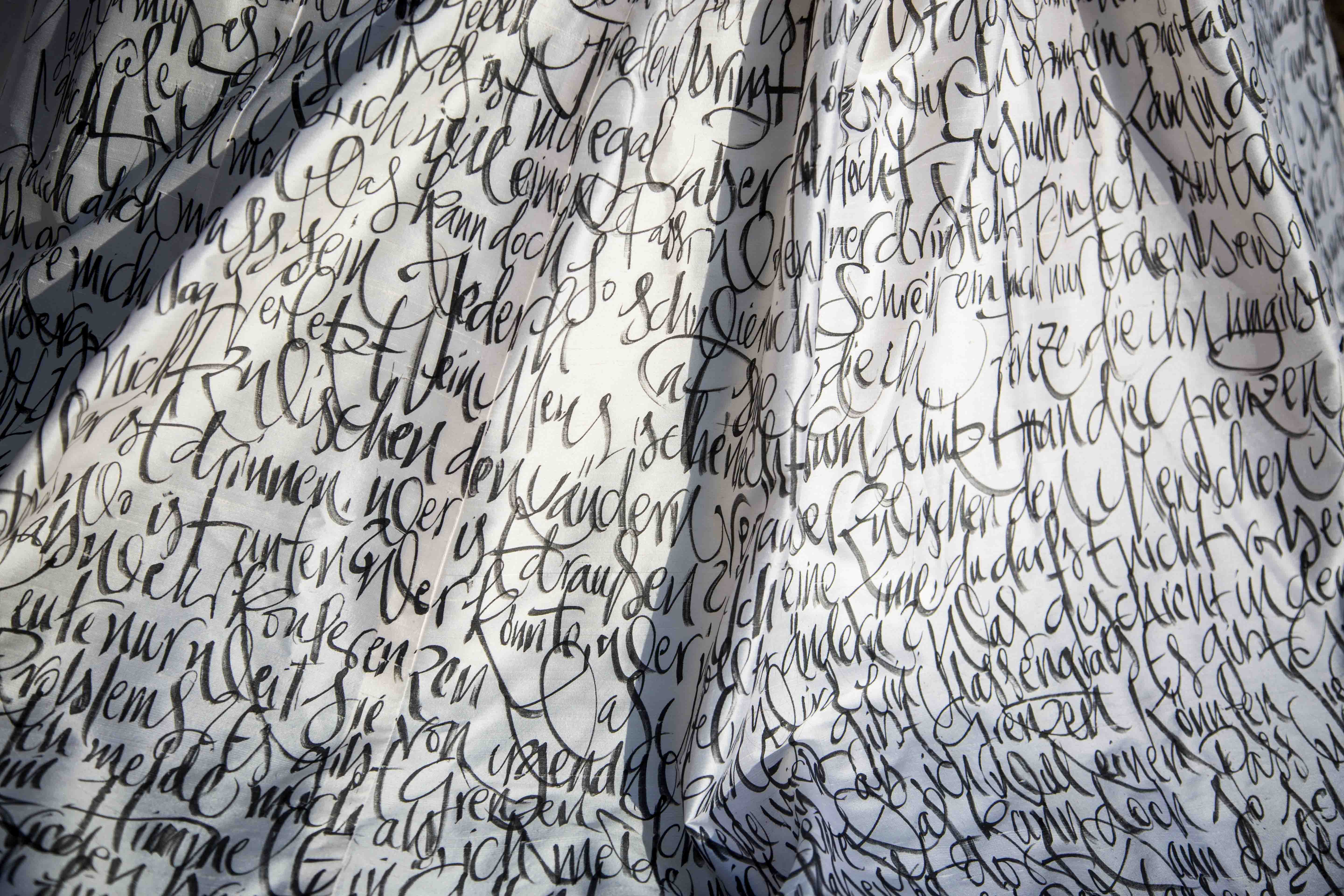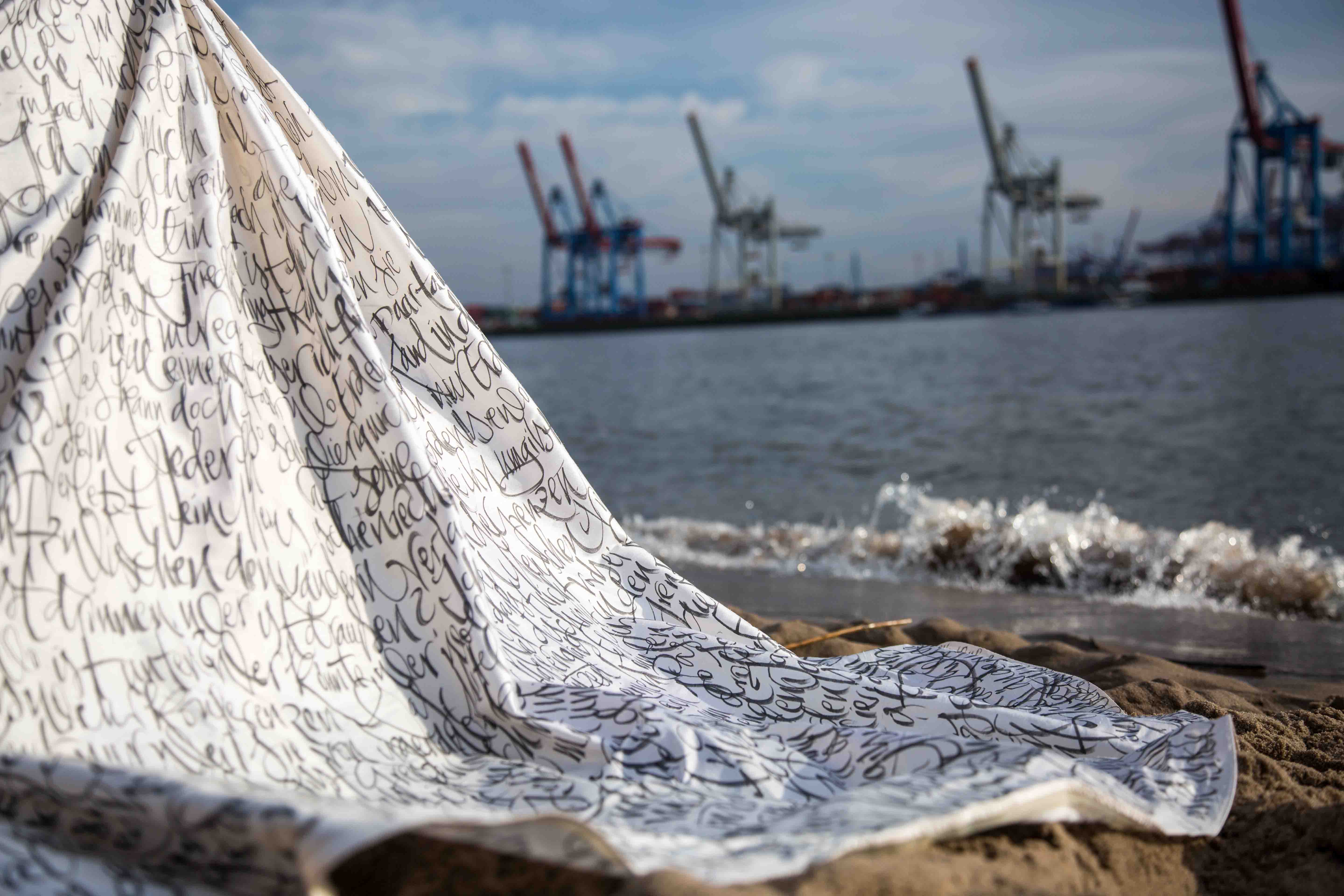 Ich wollte unbedingt ein Brautkleid kalligraphieren. Kaum ausgesprochen, stand Fotografin Julia Löwe zum shooting bereit. Mit ihr ein Kleid von Mona Berg und das Lied „Grenzen“ von Dota Kehr. Die Sonne tat ihr Bestes für ein Experiment am Elbstrand…