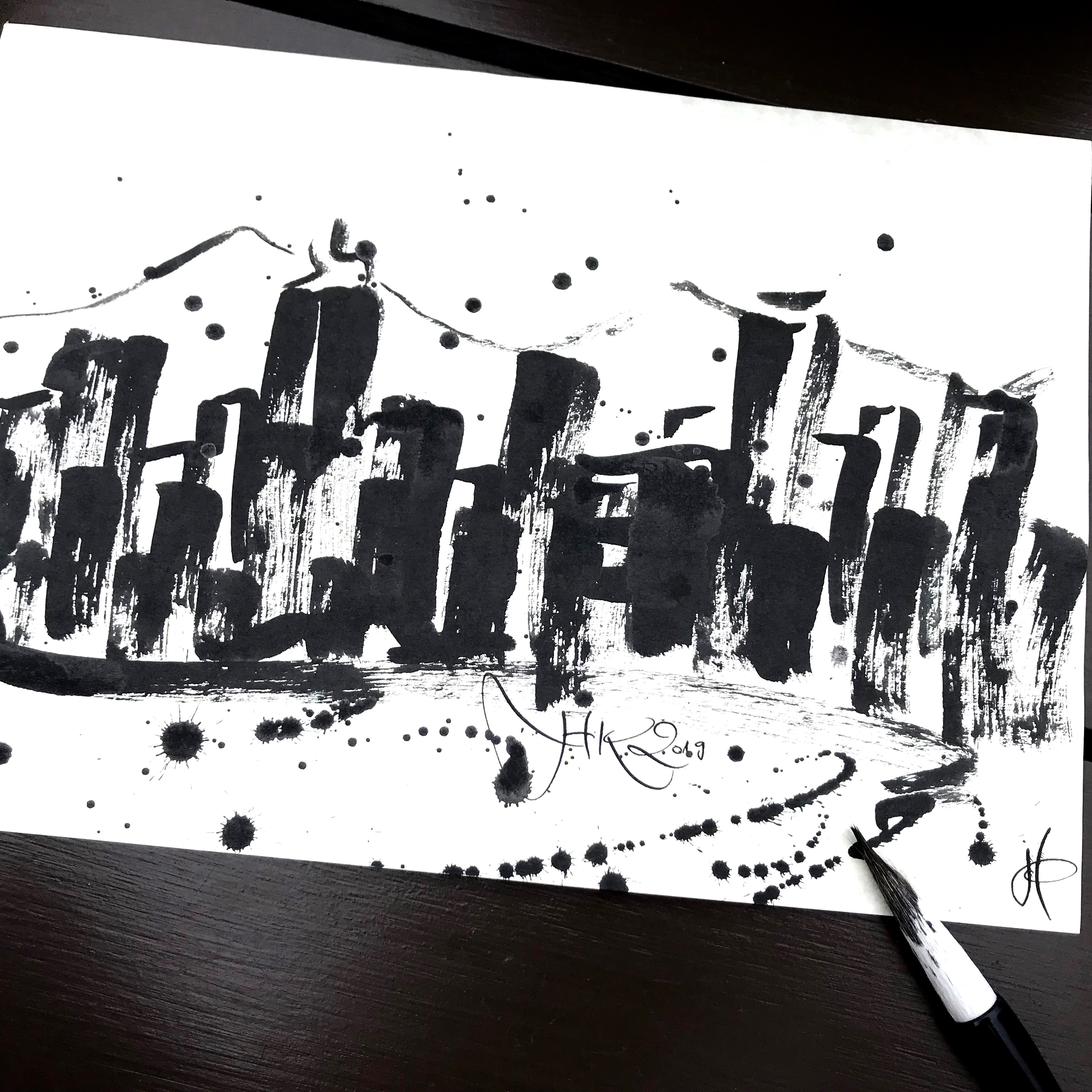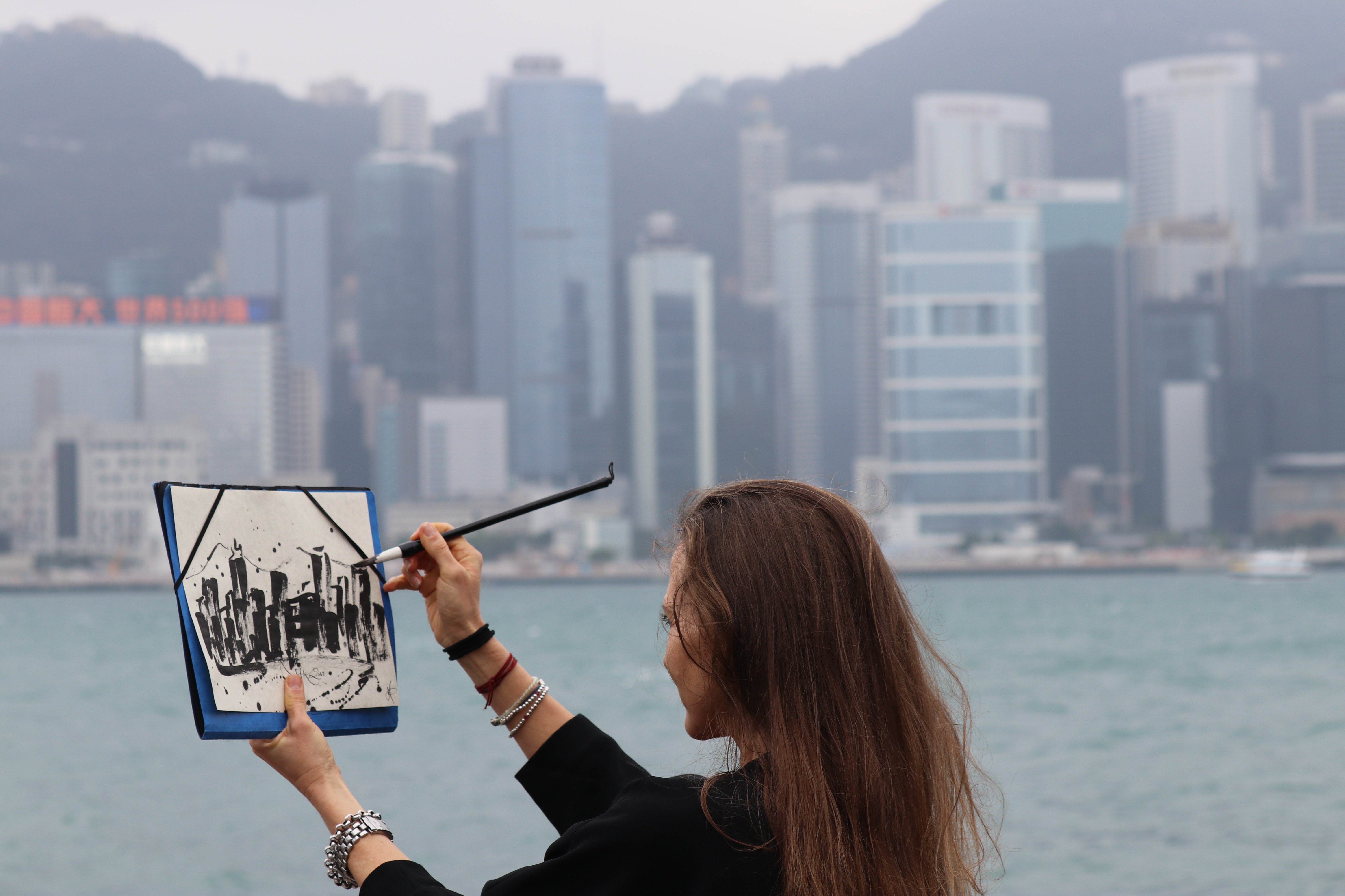 Ich kann einfach nicht an Hongkong Island´s Panorama vorbeigehen, ohne es zu malen. Wie gut, dass ich immer einen chinesischen Pinsel, Tusche und Reispapier dabei habe…