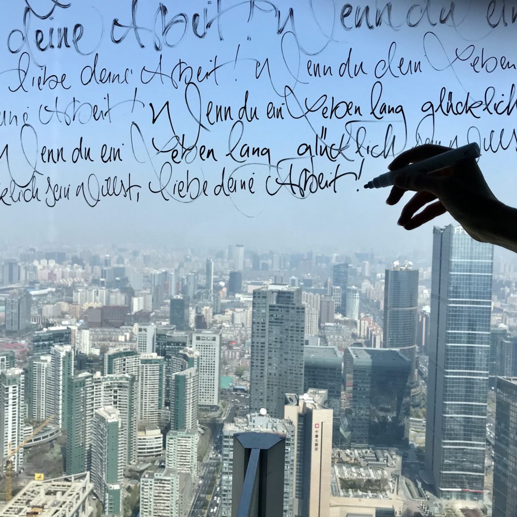 Mein Fenster aus dem 64. Stock in Peking animierte mich, eine chinesische Weisheit zu hinterlassen… „Wenn du ein Leben lang glücklich sein willst, liebe deine Arbeit“