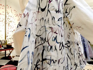 Kalligraphie auf Stoff. Mein erster Versuch inspiriert mich, weiter zu experimentieren… Jeannine Platz 11. August 2017