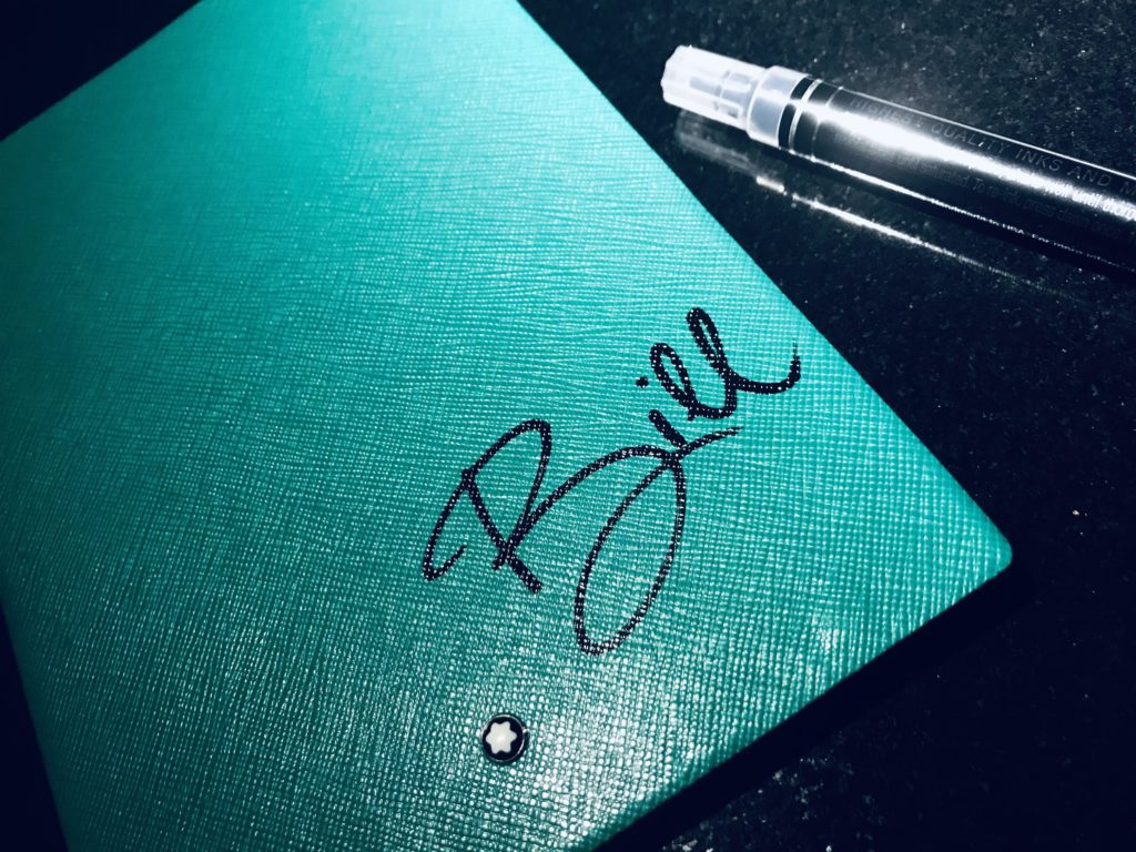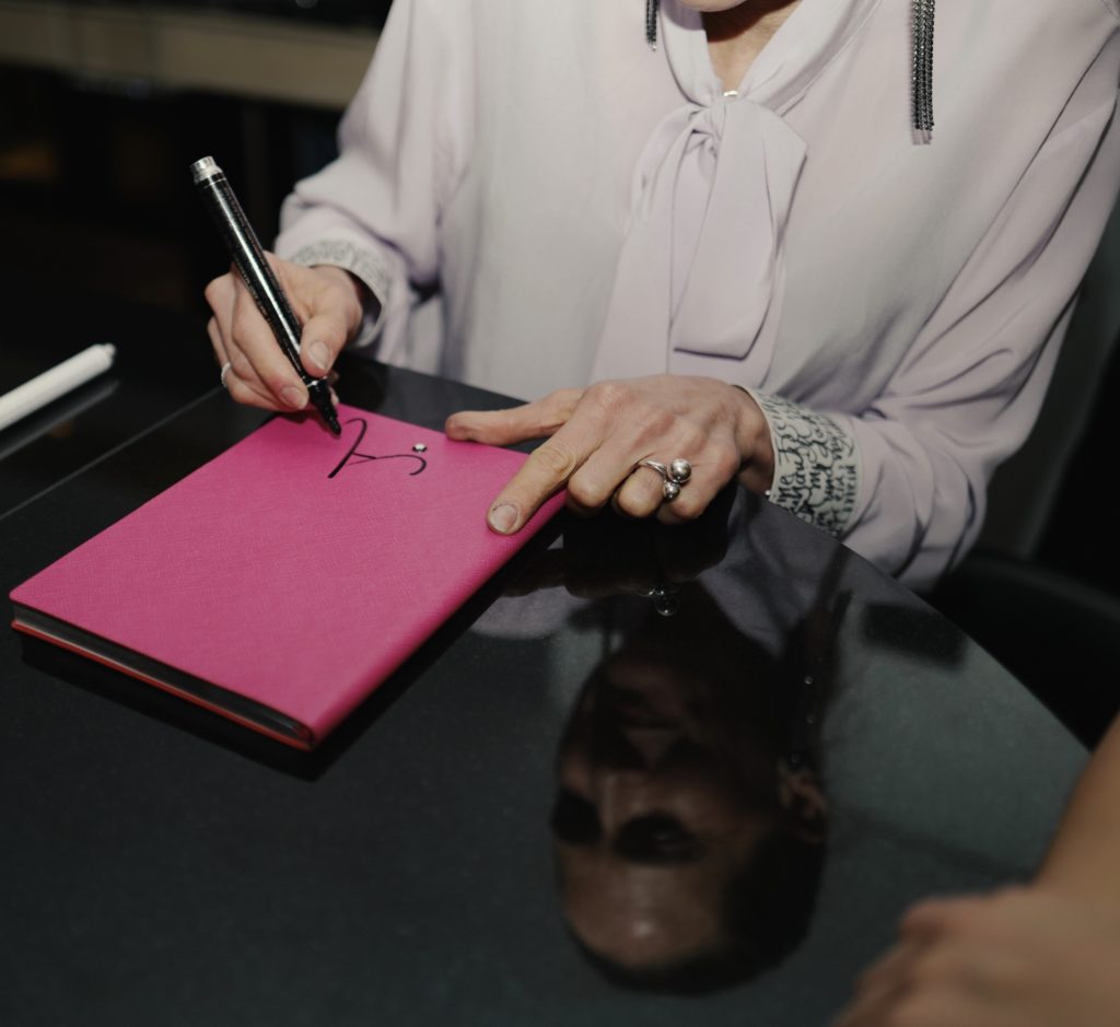 Schreiben für den guten Zweck: Die Gründerinnen von Four Hearts Charity Juliane Diesner, Natalie Franz, Charly Kraska & Franziska Nellessen organisierten im Izakaya ein supererfolgreiches Event für Autonome Frauenhäuser und ich personalisierte für die Gäste Notizbücher von Montblanc. Bill Kaulitz hat auch eins bekommen..