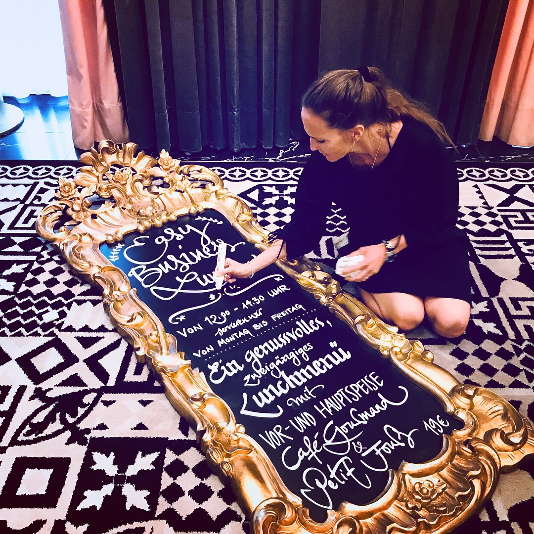 Während meines Kurztrips nach Wien wartet die Restauranttafel meines Hotels -Hotel Sans Souci Wien- darauf, von mir neu beschrieben zu werden. Und dabei erinnere ich mich an die schöne Zeit, als ich hier vor 1 Jahr das Bild für mein Suite View Projekt gemalt habe…