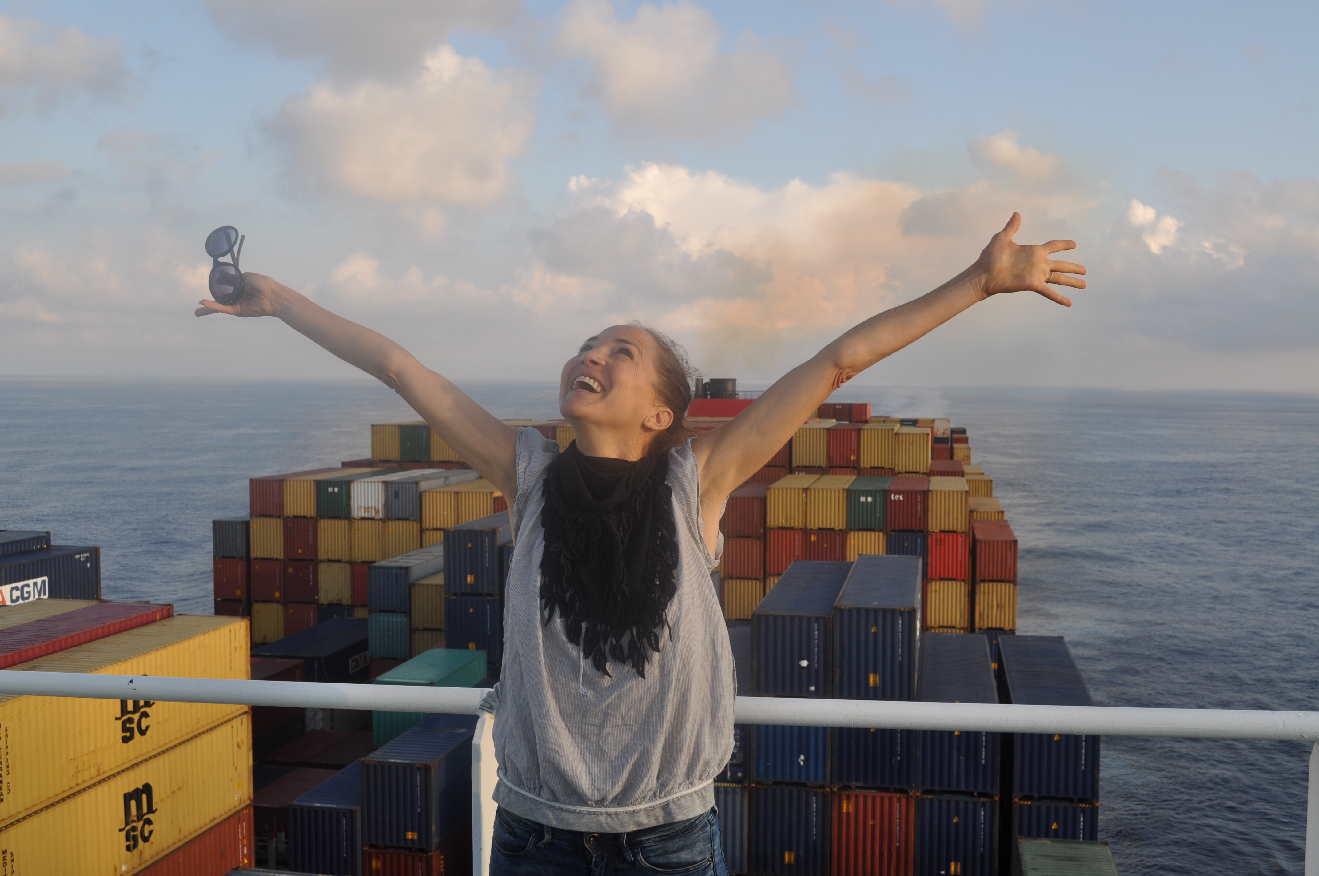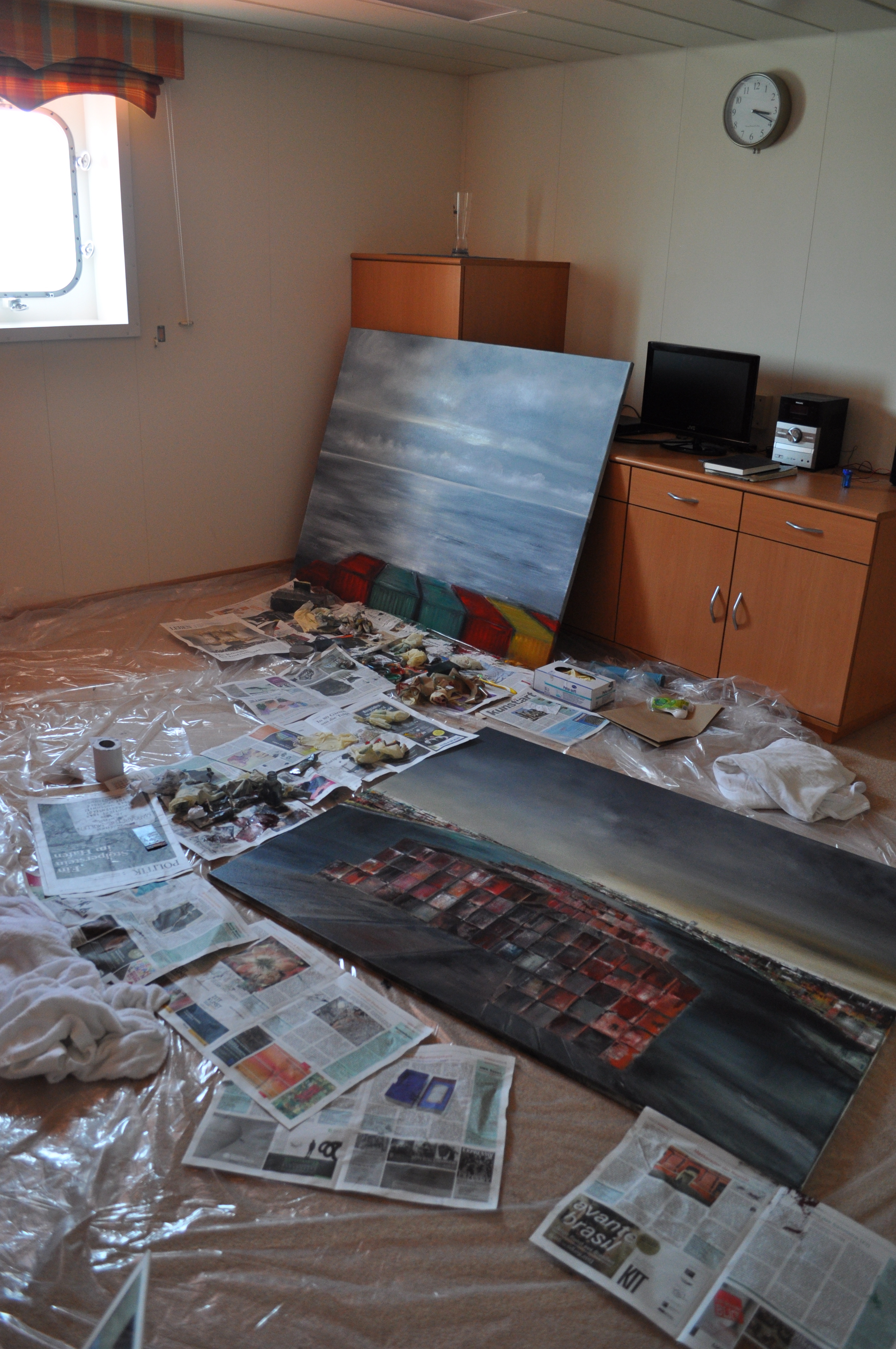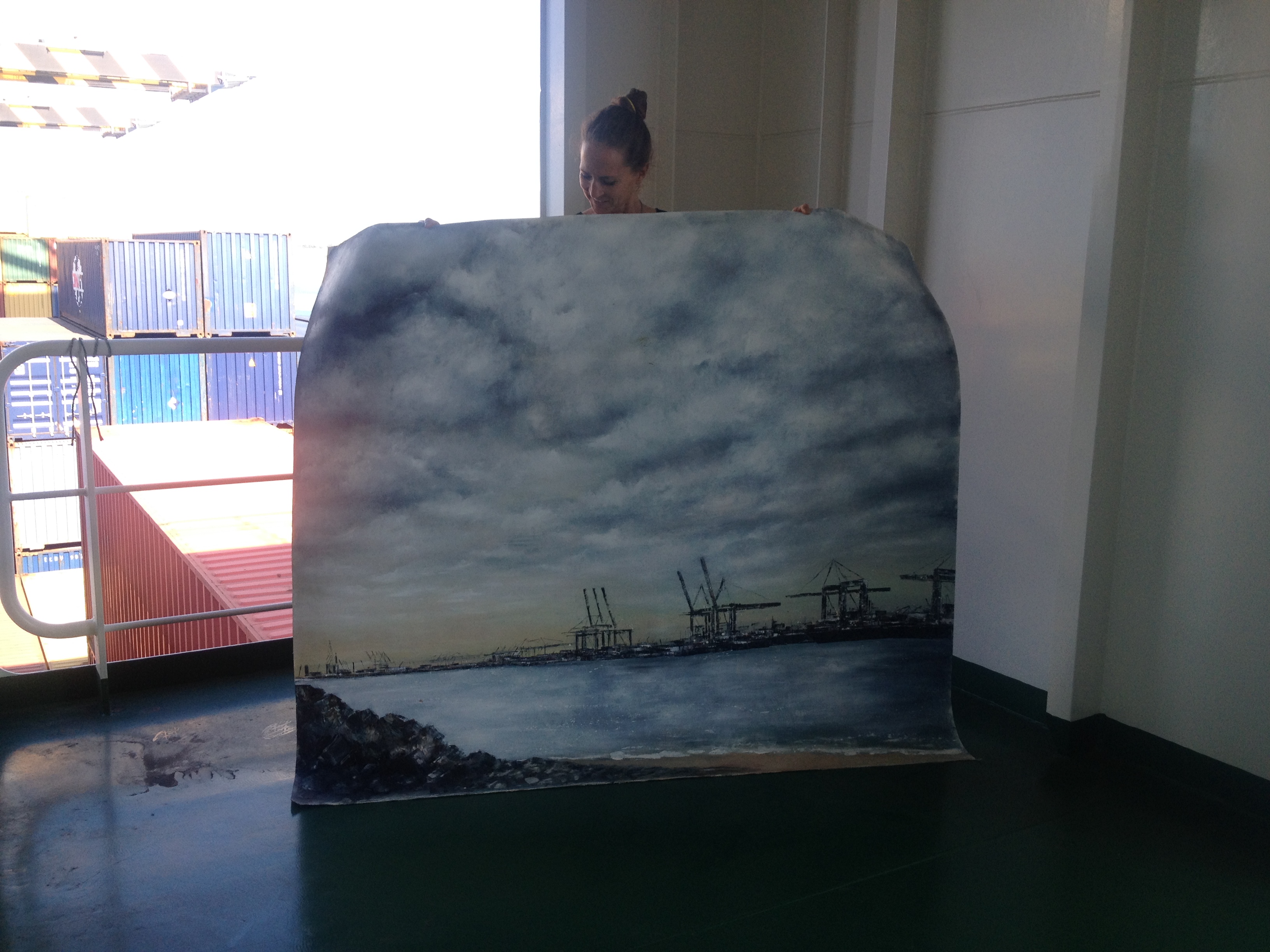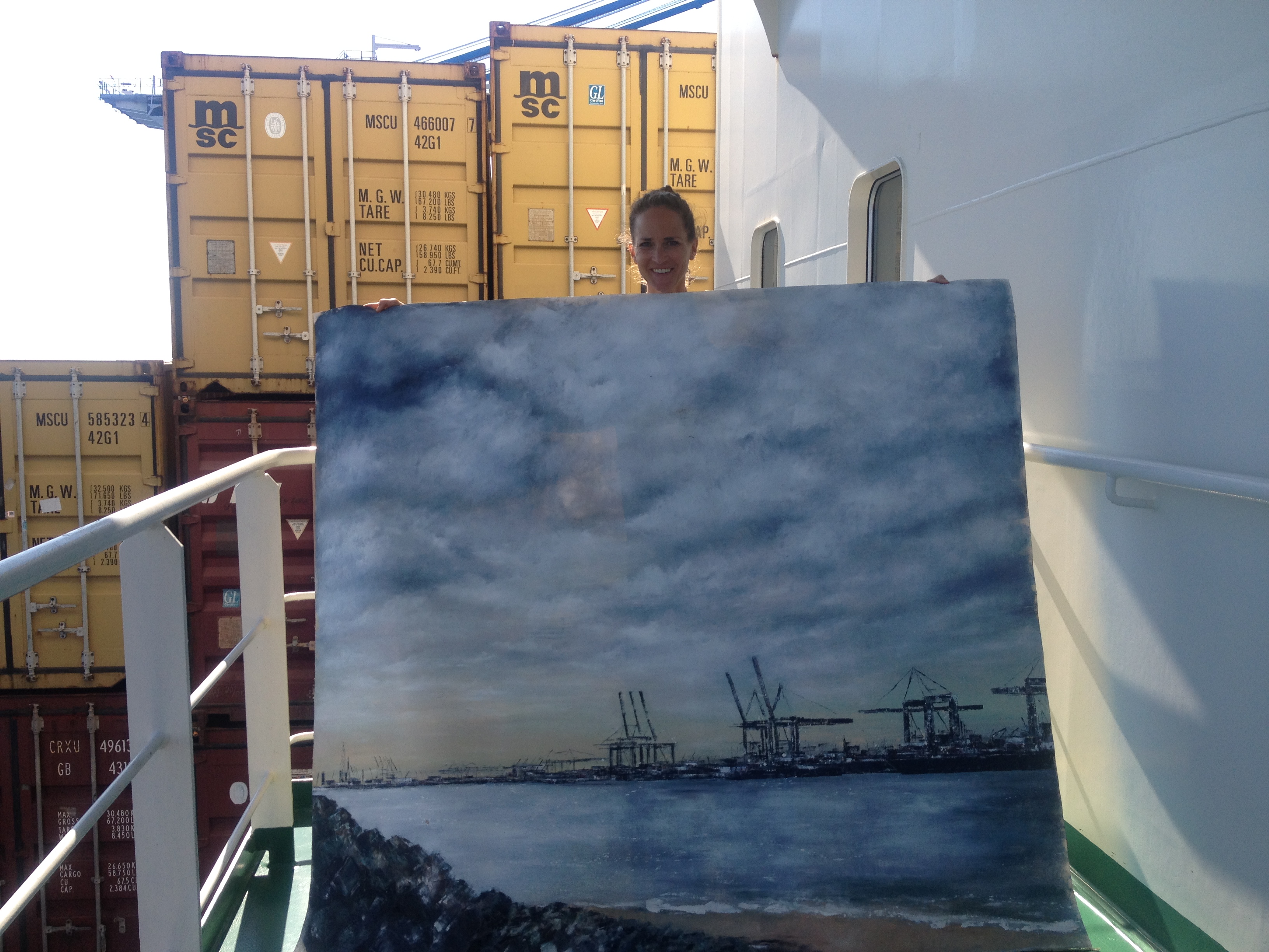 „Es ist herrlich, in wildem Sturm auf einem Schiff zu sein, von dem man weiß dass es im Hafen ankommt“ ( Blaise Pascal ) Die Sehnsucht nach der Fern packt mich wieder und ich springe auf das weltgrößte CMA CGM Containerschiff Alexander von Humboldt und male an Bord in meiner Eignersuite, wenn ich nicht auf der Brücke beim Käptn und seiner Crew bin.