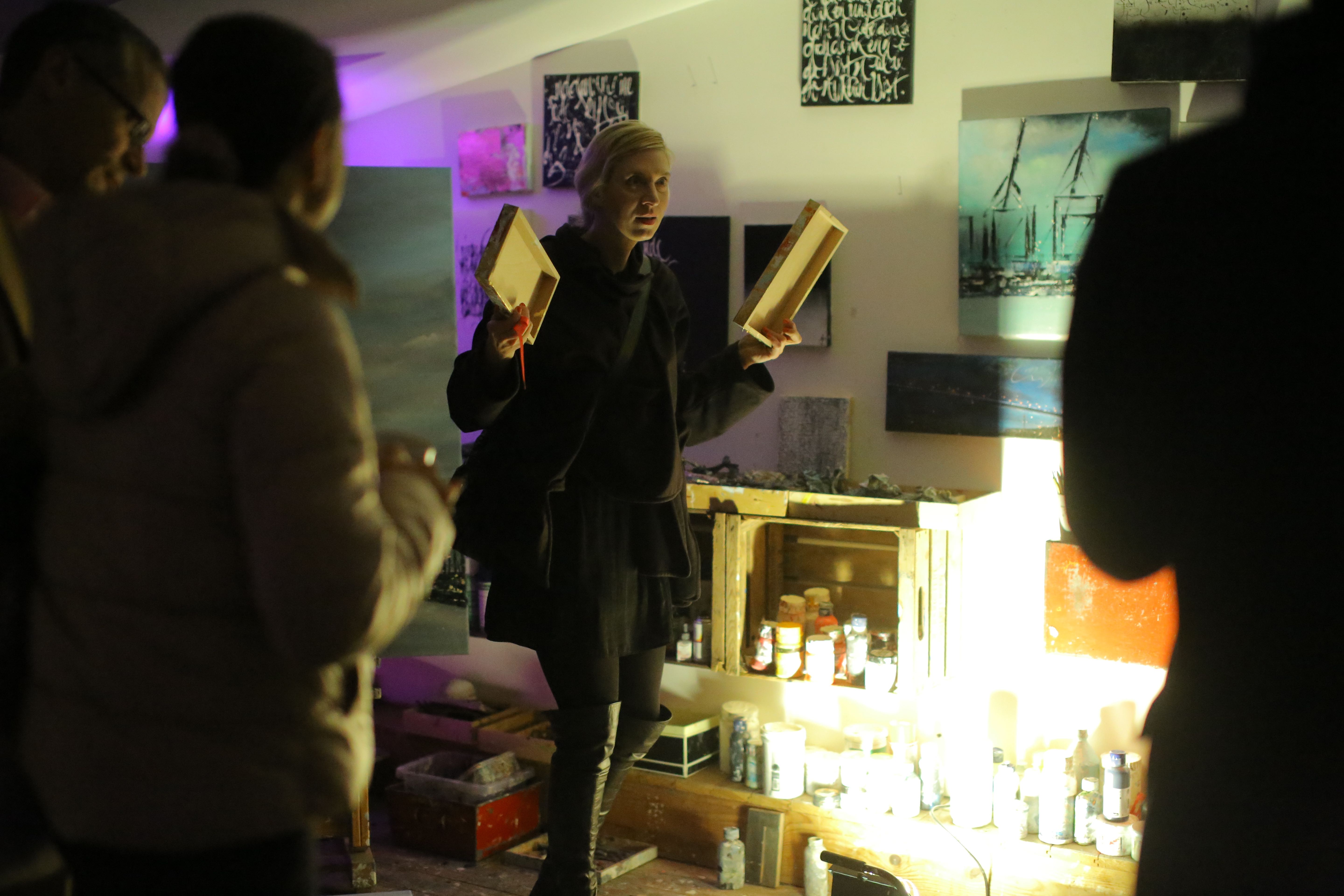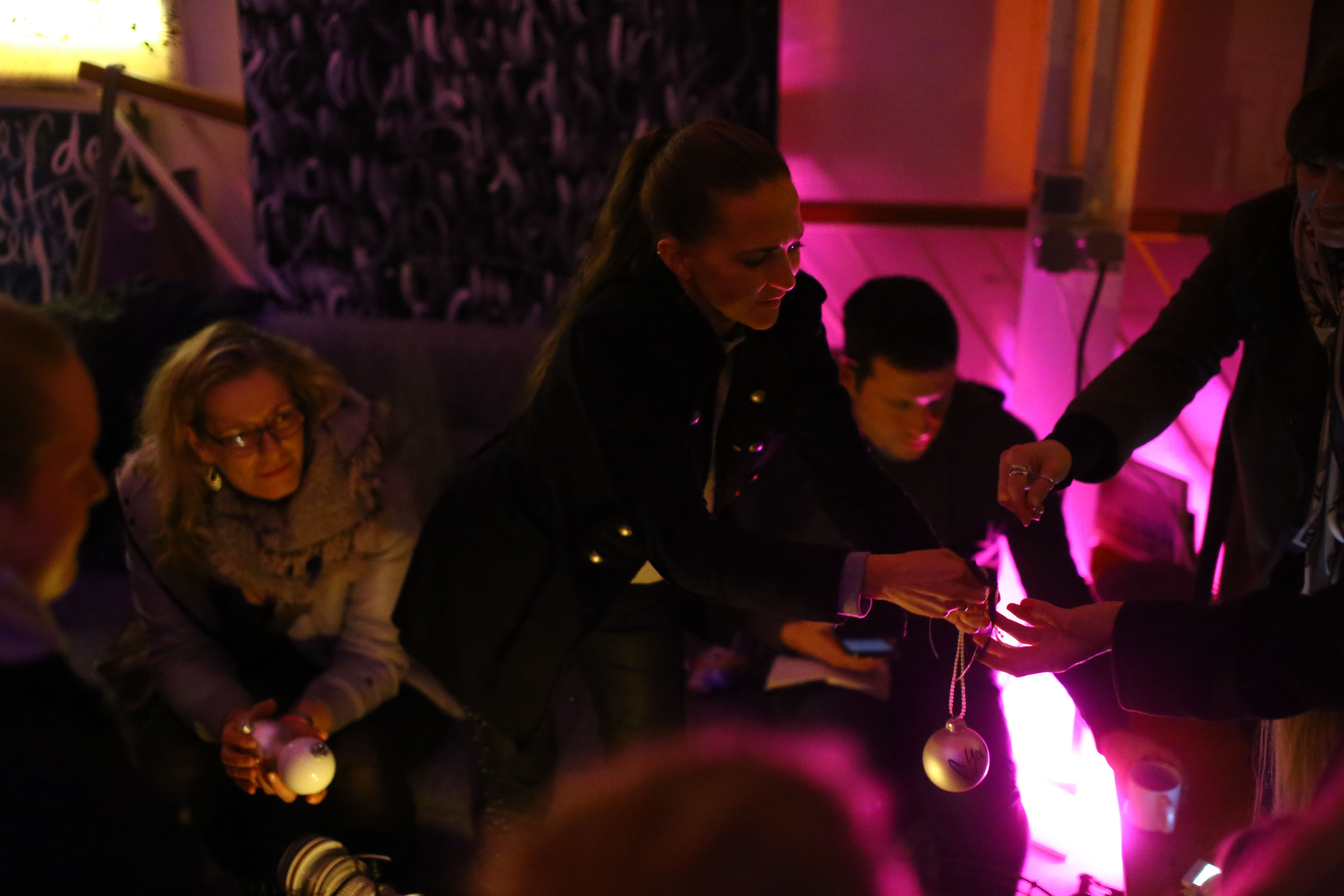 Volles Haus mit herzallerliebsten Gästen. Wie herrlich, mein Atelier im schönsten Hinterhof noch bunter, als sonst zu erleben. Es gab von mir jede Menge kalligraphierte Weihnachtskugeln, DJ Ivo sorgte für die musikalische Atmosphäre, Jens Maly zauberte das Licht. Fotos: Ronny Zeisberg, Jan Winter.