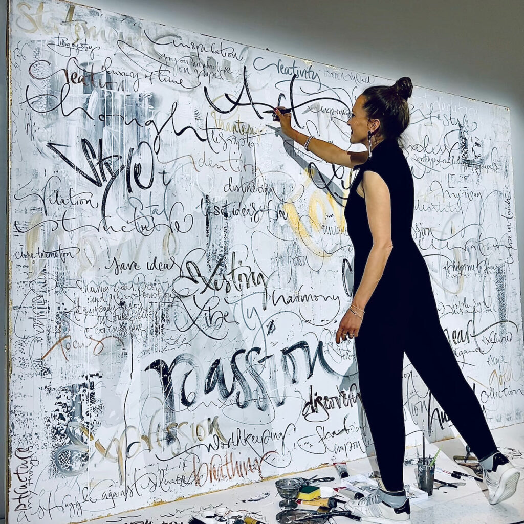 Diese Frage verteilte sich bei einem Event auf allen Etagen im Montblanc Haus und bewegte die Gäste. Sie gaben mir persönliche Antworten und daraus entstand eine Collage und eine interaktive Performance, die aus vielen Impulsen aus aller Welt ein gemeinsames Kunstwerk hervorbrachte.