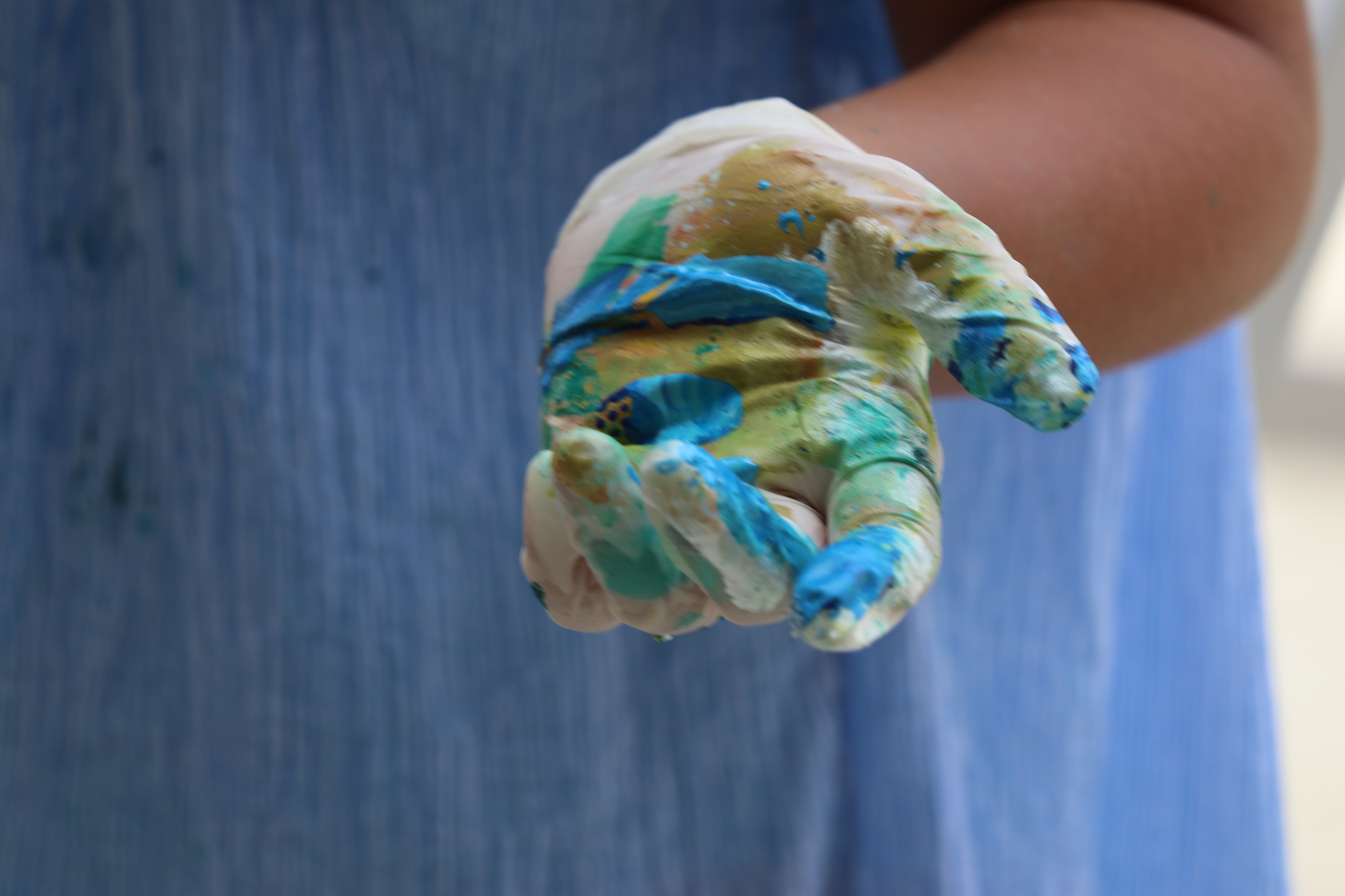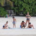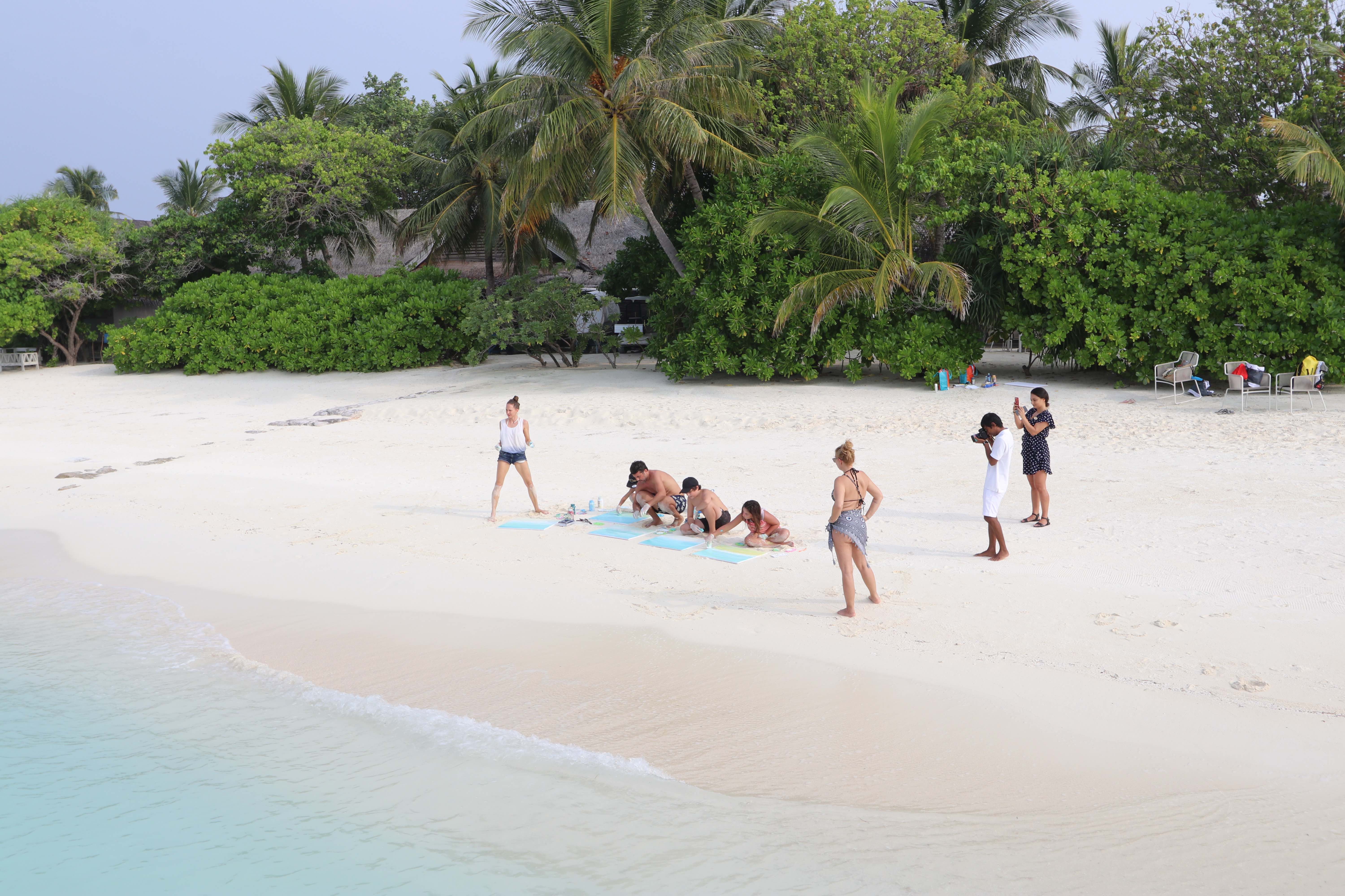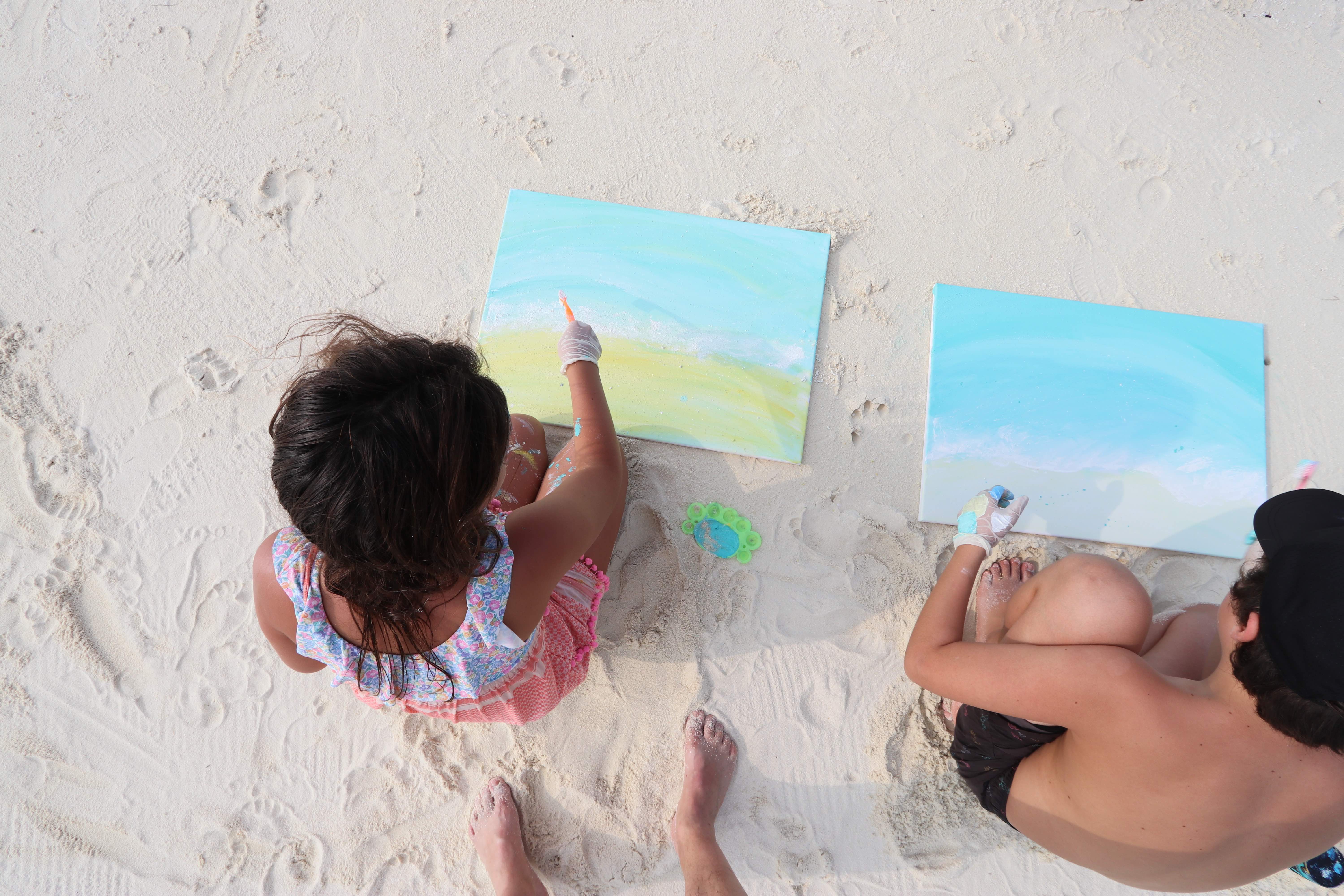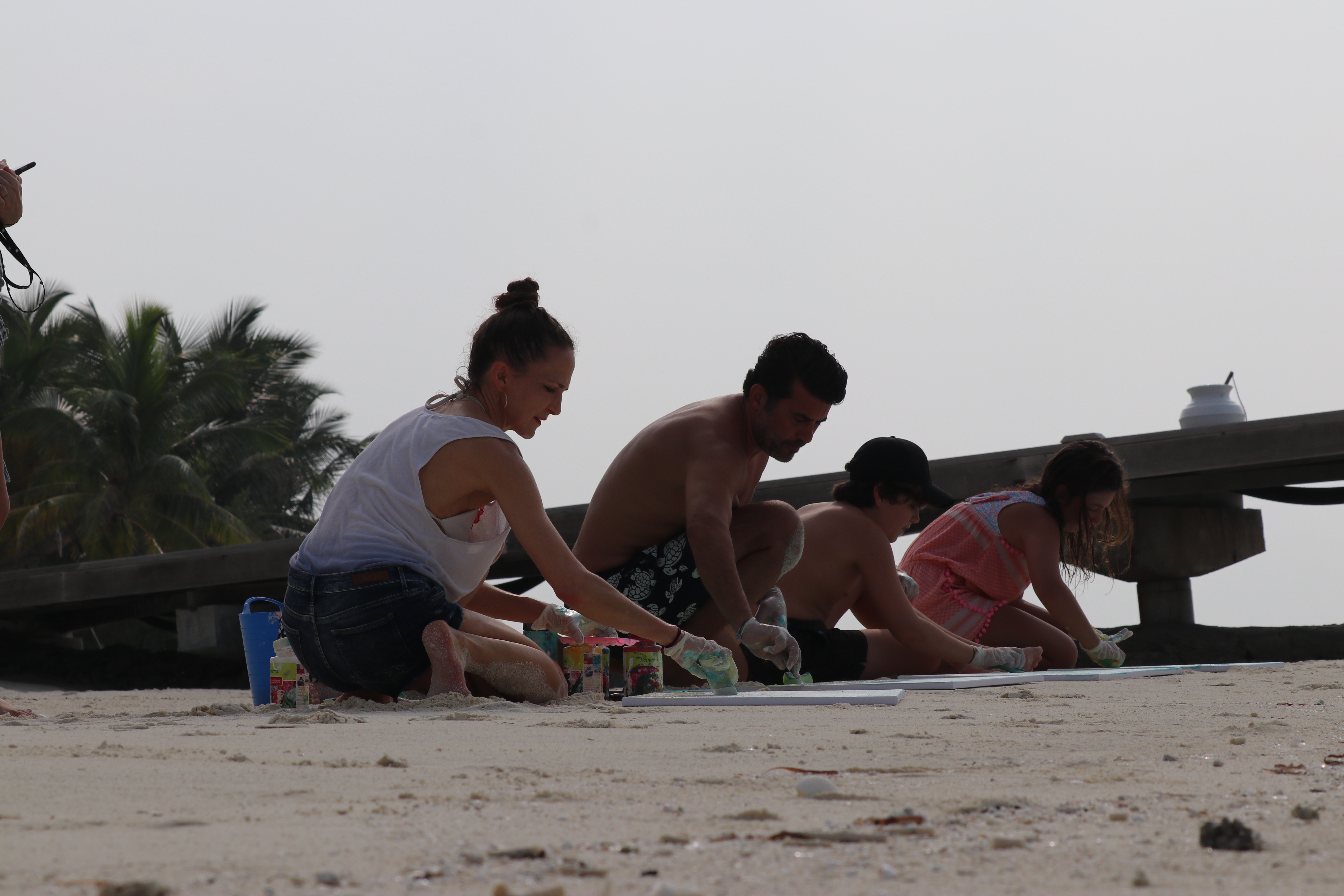 Meine Kunstkurse mitten im indischen Ozean, barfuß im Sand. Alle Künstler lernen meine Technik, mit den Händen zu malen und nehmen ihr eigenes Stück Malediven mit nach Hause